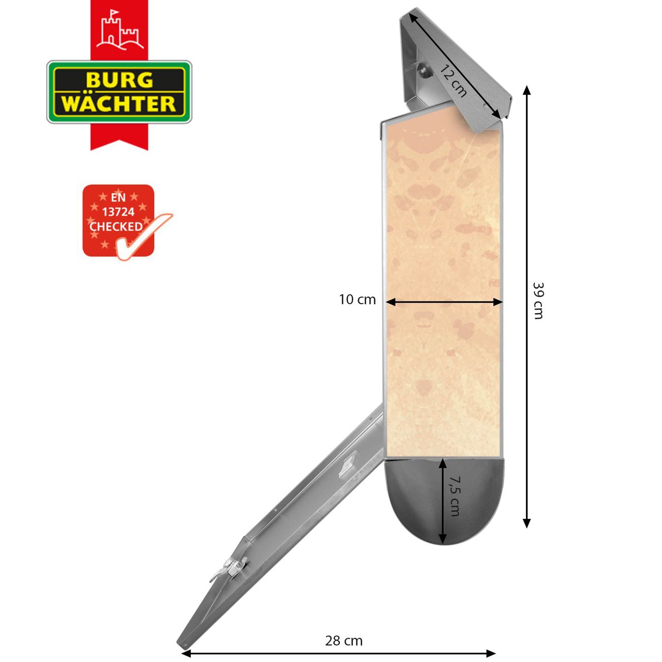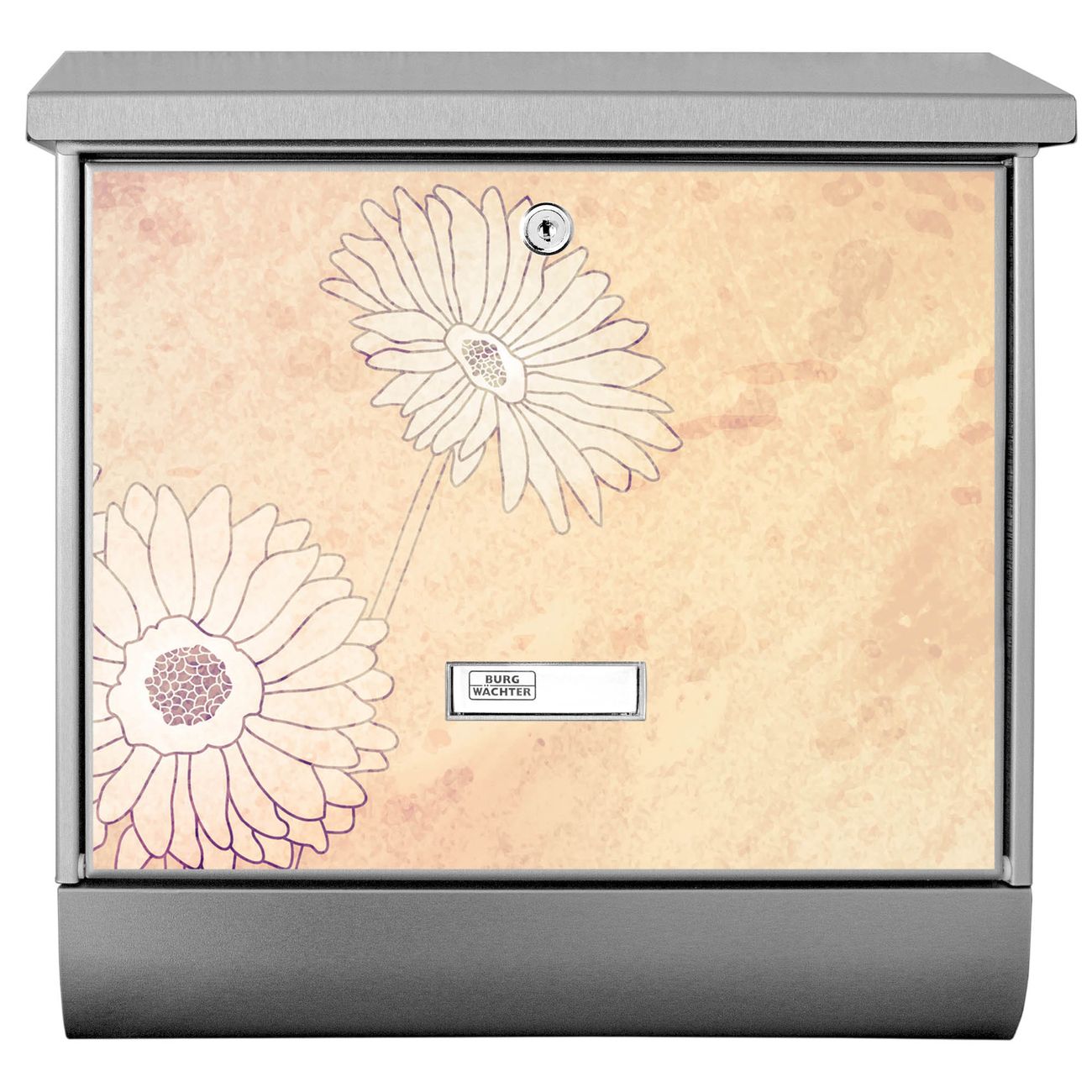 Der BURG-WÄCHTER Edelstahl Briefkasten mit Motiv Gerbera und Zeitungsrolle bietet Ihnen mit seinem Fassungsvermögen genügend Platz auch für große A4 Sendungen und Zeitschriften. Das integrierte Regendach schützt Ihre Post vor dem Eindringen von Regen.