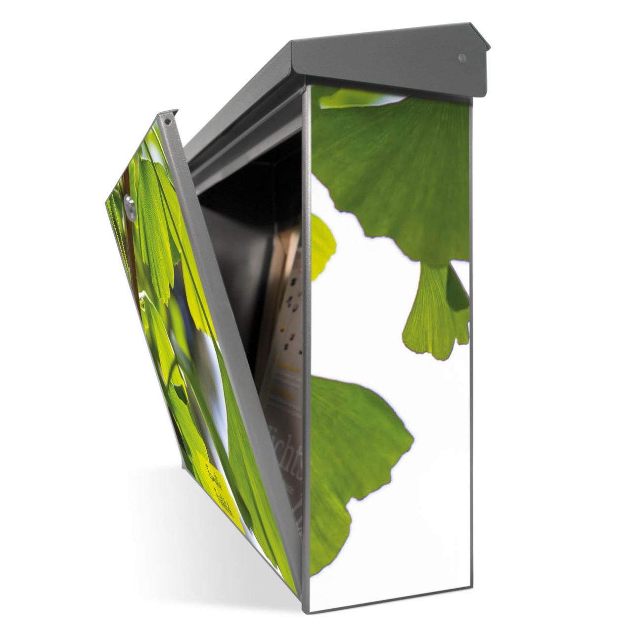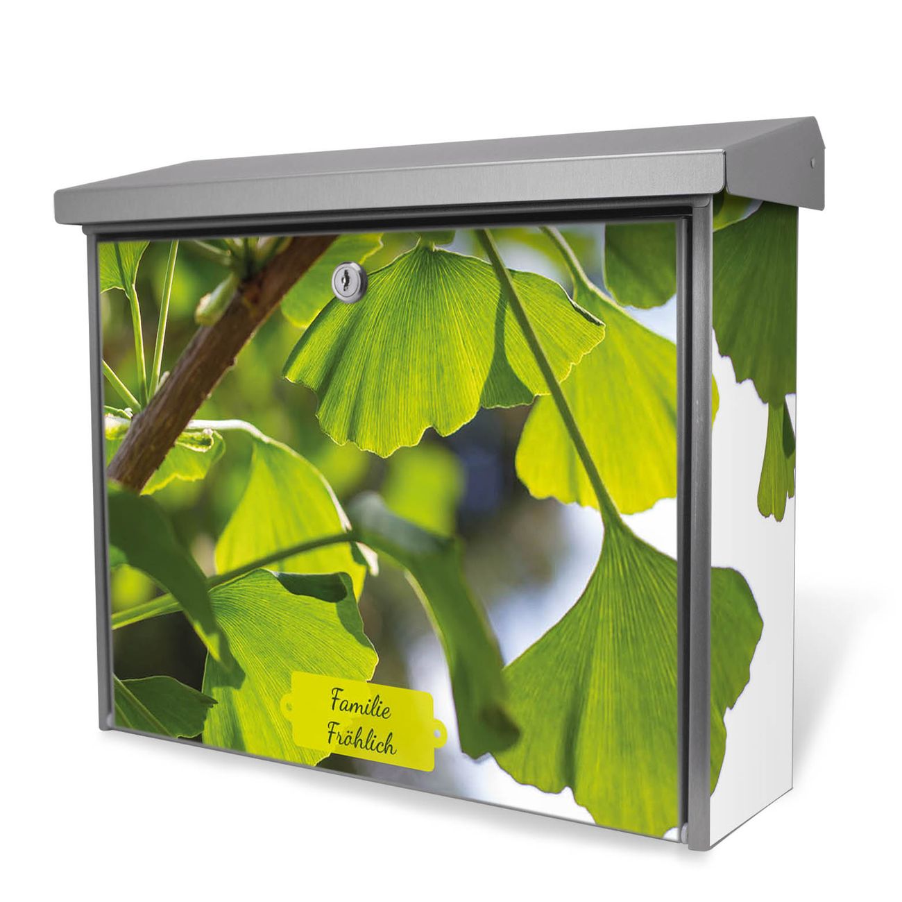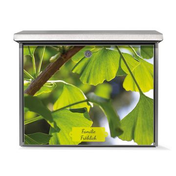 Der Postkasten mit Gingko Motiv hat ein sehr ansprechendes und zeitloses Design. Unsere Motivpalette hält jede Menge Varianten bereit, ob klassisch, modern, verspielt oder witzig - für jeden haben wir das passende Motiv parat. Der Briefkasten ist das Aushängeschild Ihres Hauses.
