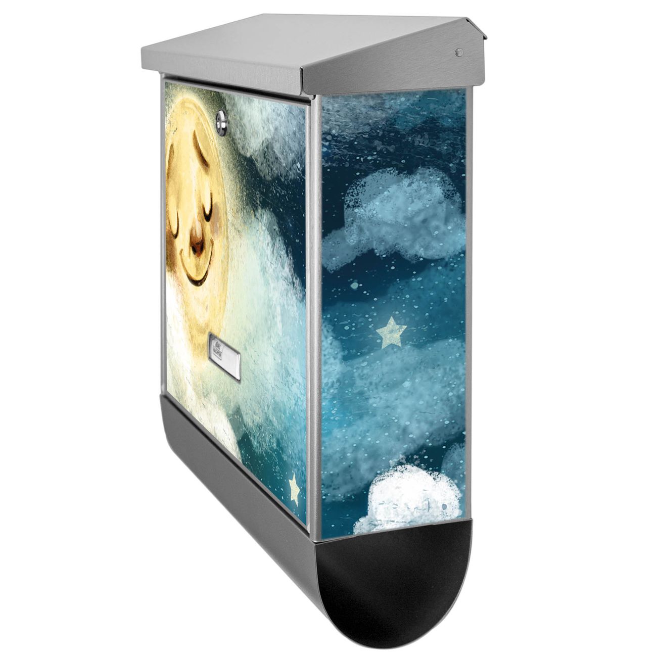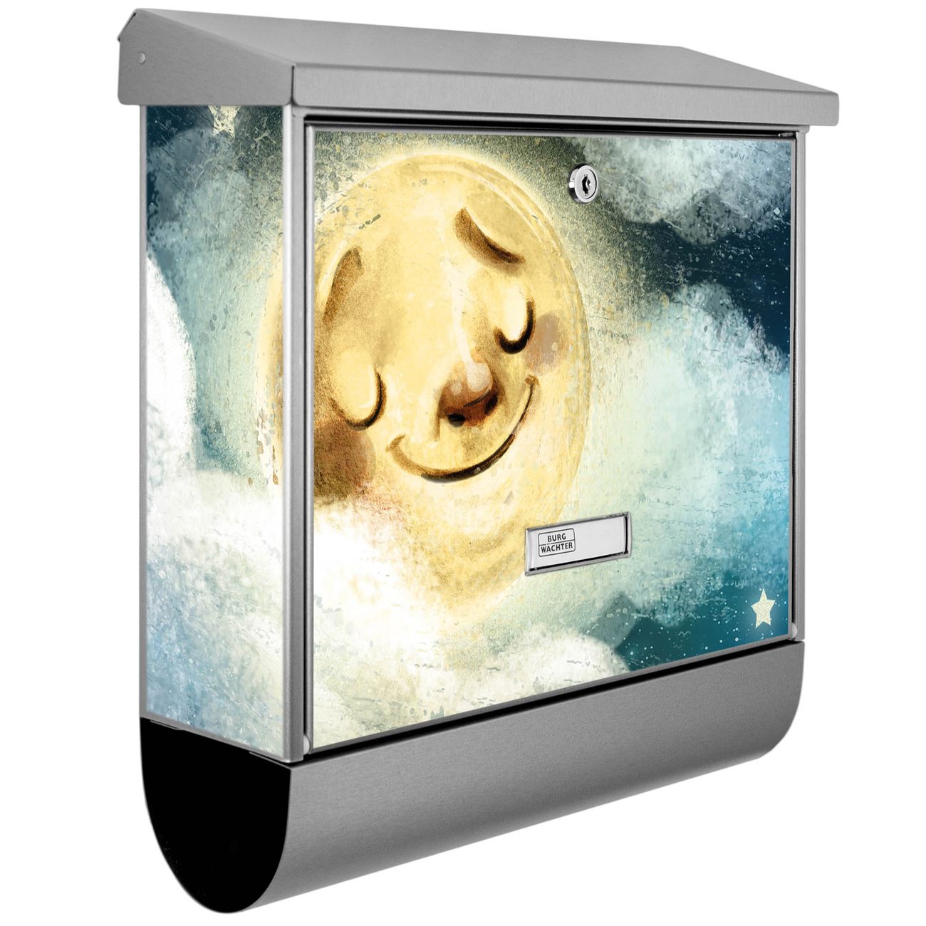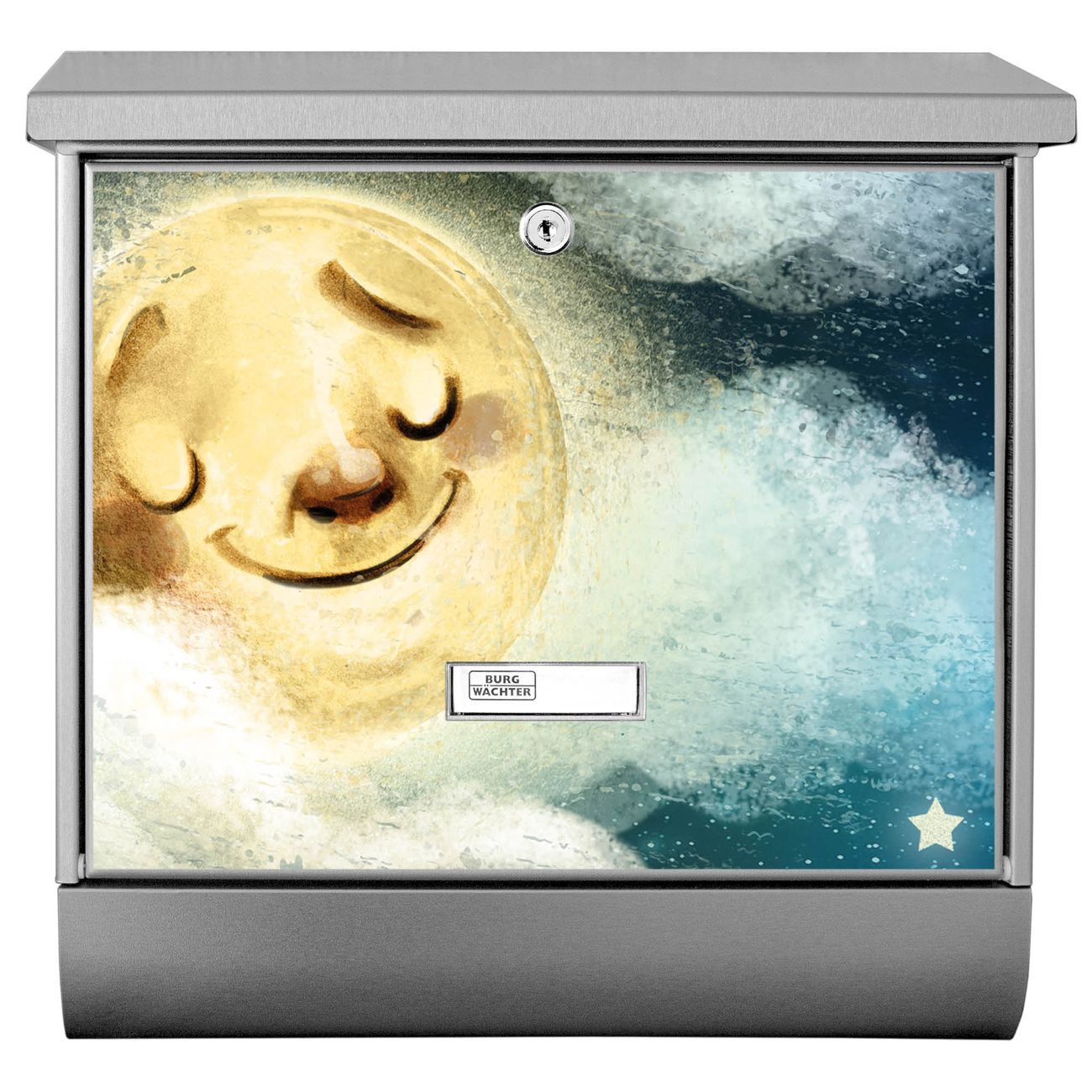 Der BURG-WÄCHTER Edelstahl Briefkasten mit Motiv Glücksmond und Zeitungsrolle bietet Ihnen mit seinem Fassungsvermögen genügend Platz auch für große A4 Sendungen und Zeitschriften. Das integrierte Regendach schützt Ihre Post vor dem Eindringen von Regen.