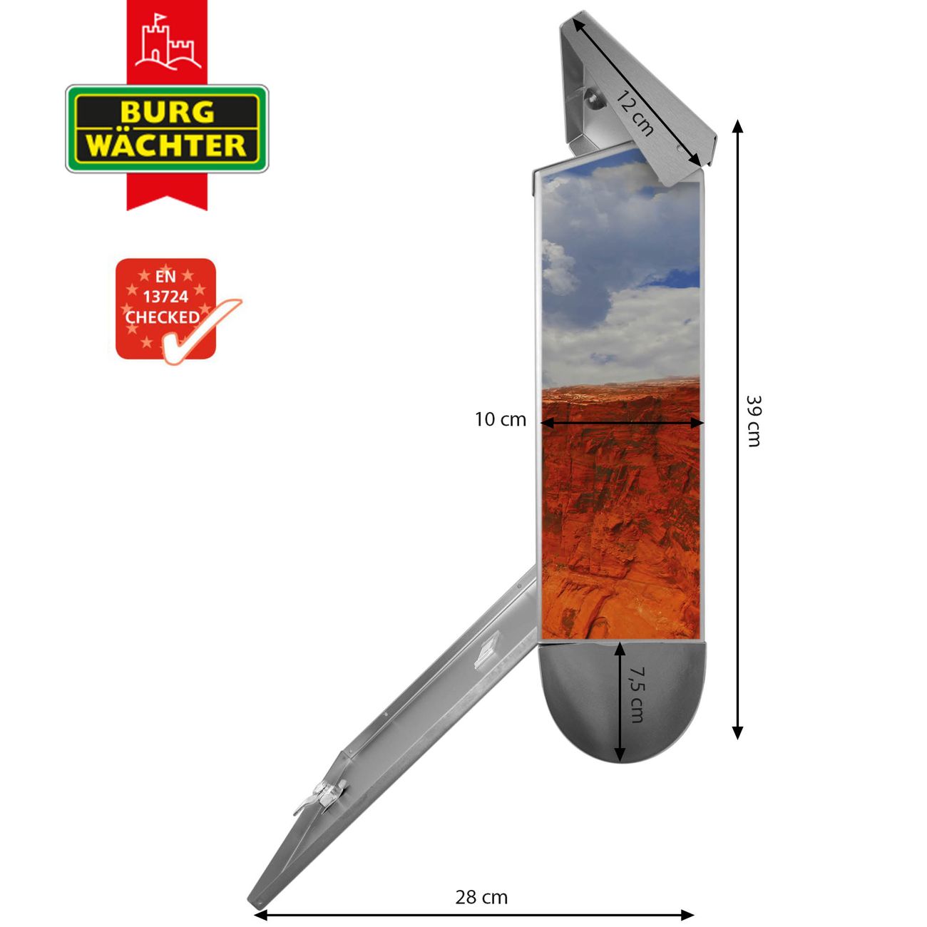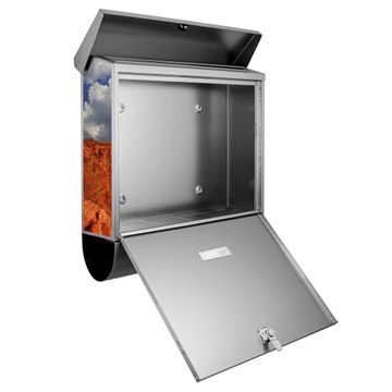 Der BURG-WÄCHTER Edelstahl Briefkasten mit Motiv Grand Canyon und Zeitungsrolle bietet Ihnen mit seinem Fassungsvermögen genügend Platz auch für große A4 Sendungen und Zeitschriften. Das integrierte Regendach schützt Ihre Post vor dem Eindringen von Regen.