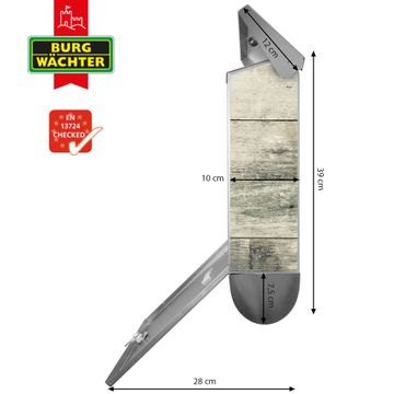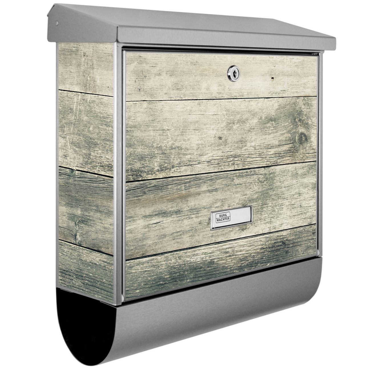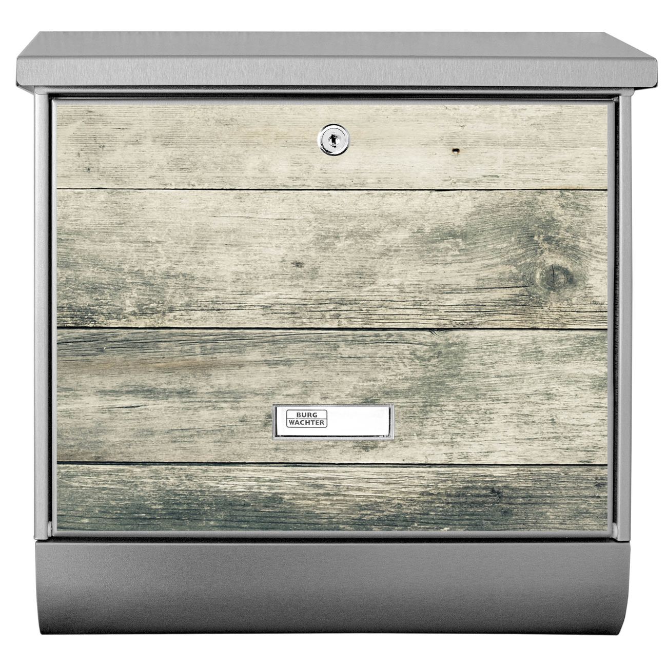 Der BURG-WÄCHTER Edelstahl Briefkasten mit Motiv Graue Planken und Zeitungsrolle bietet Ihnen mit seinem Fassungsvermögen genügend Platz auch für große A4 Sendungen und Zeitschriften. Das integrierte Regendach schützt Ihre Post vor dem Eindringen von Regen.