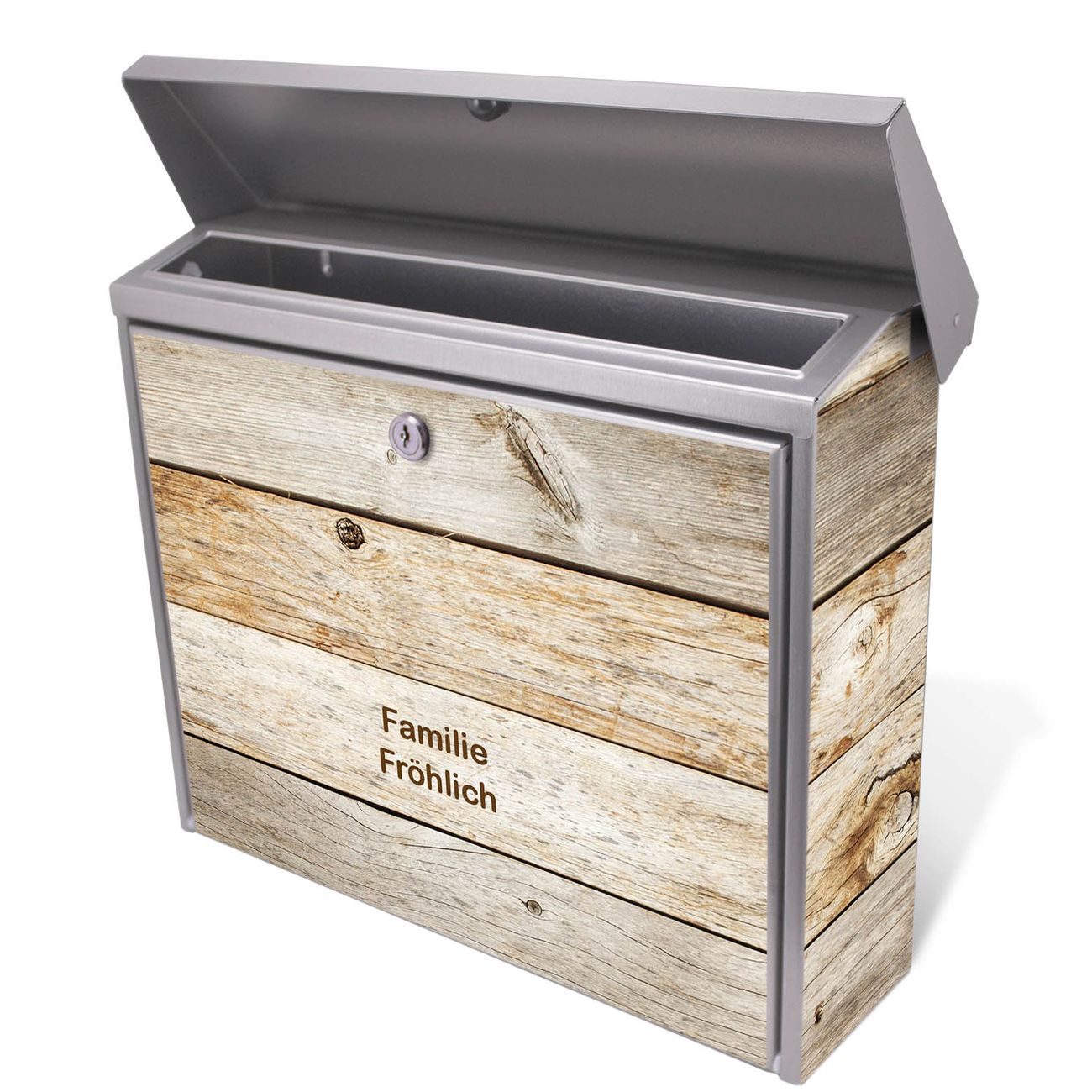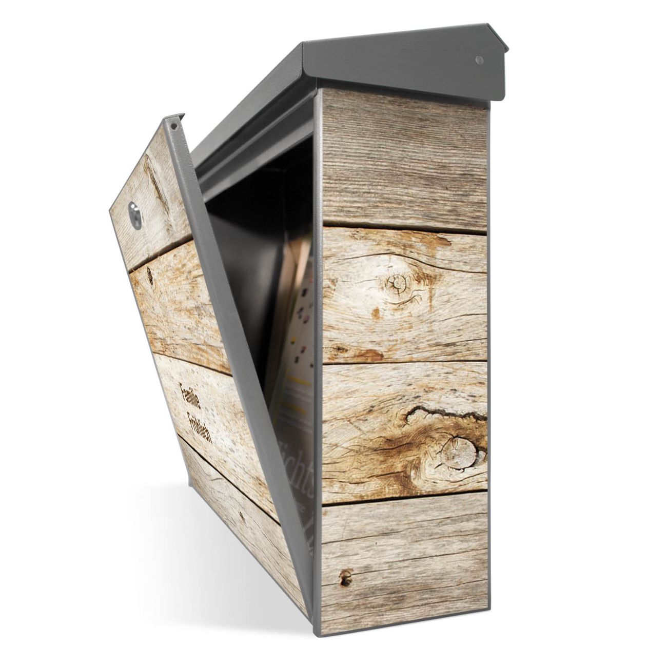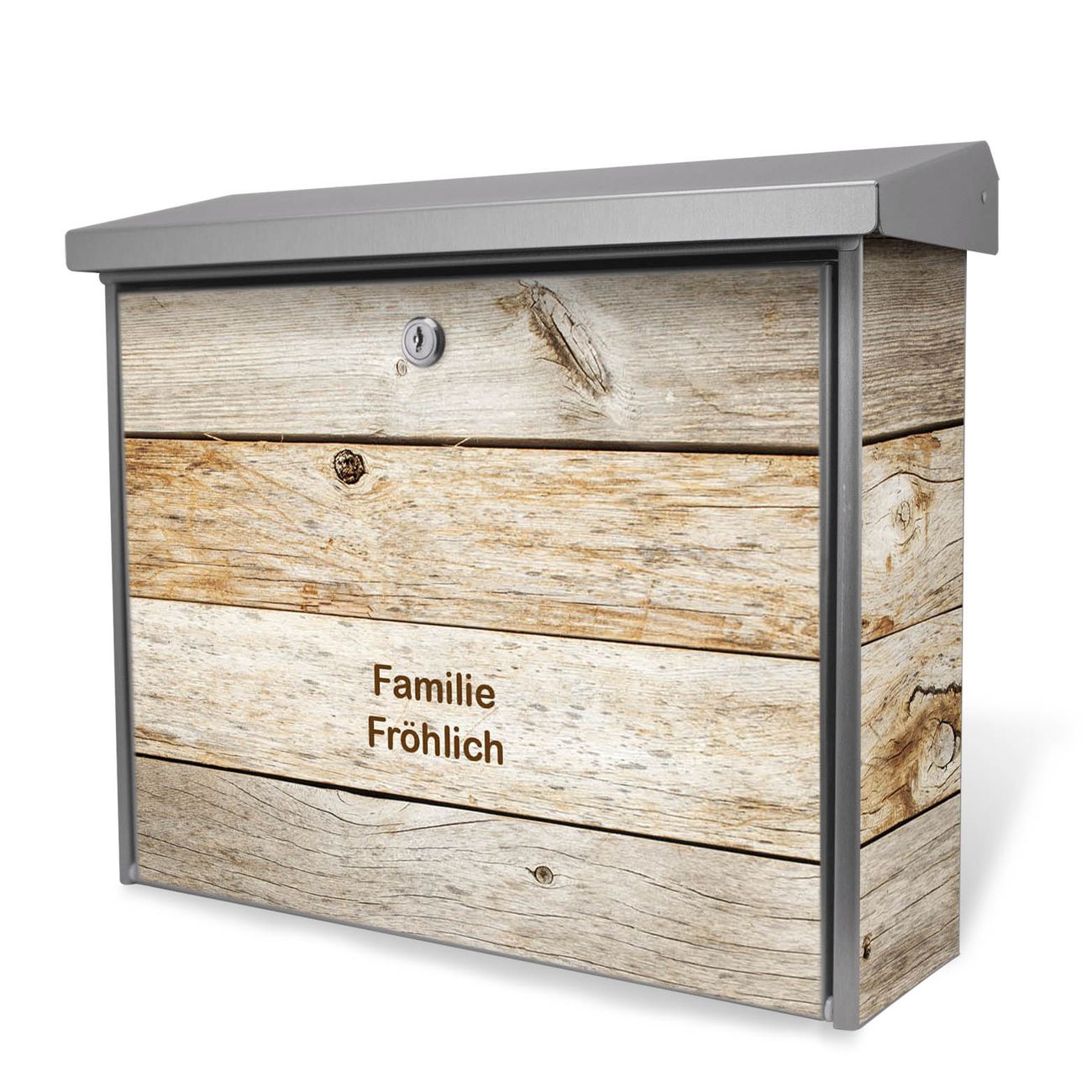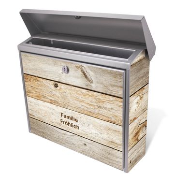 Der Postkasten mit Graues Holz Motiv hat ein sehr ansprechendes und zeitloses Design. Unsere Motivpalette hält jede Menge Varianten bereit, ob klassisch, modern, verspielt oder witzig - für jeden haben wir das passende Motiv parat. Der Briefkasten ist das Aushängeschild Ihres Hauses.