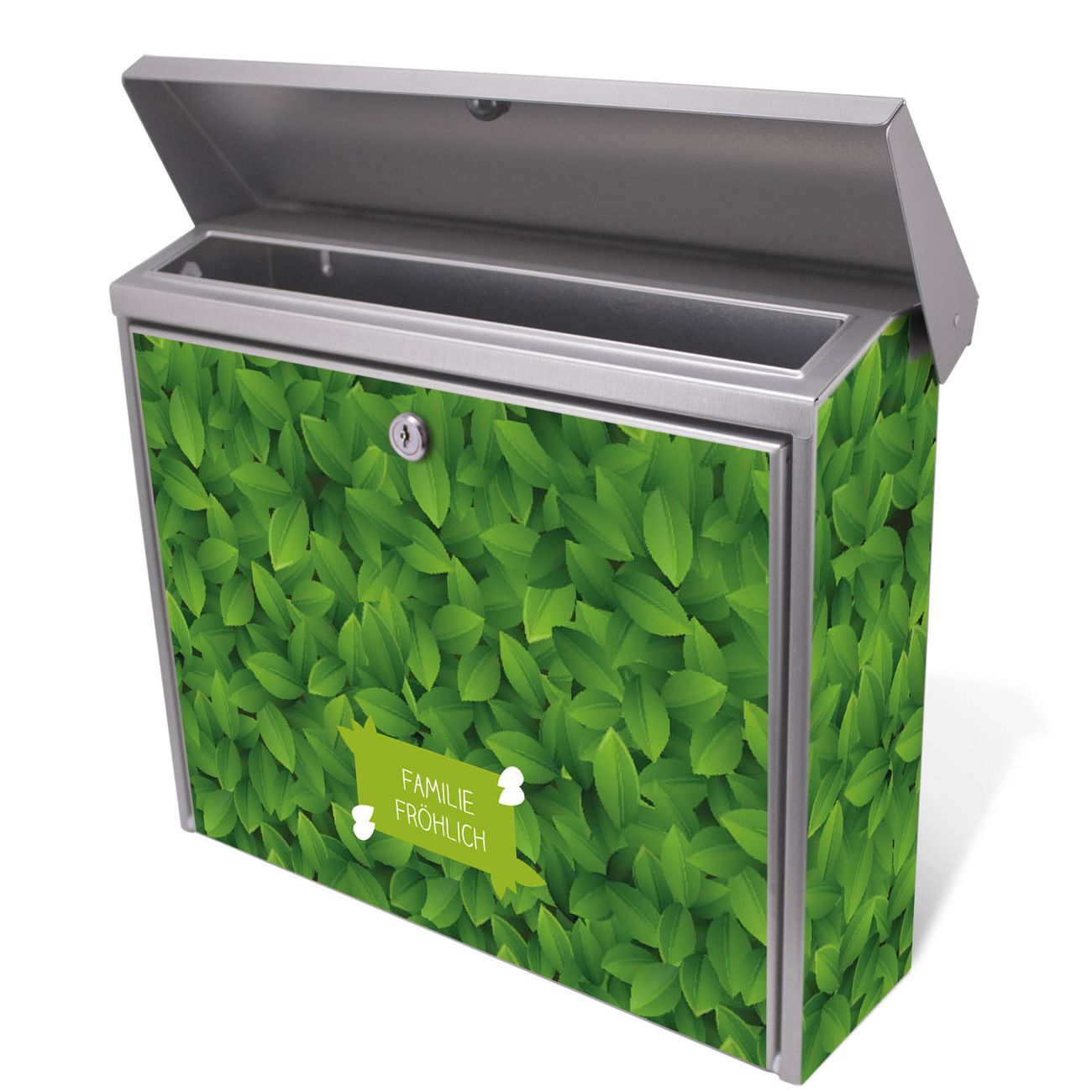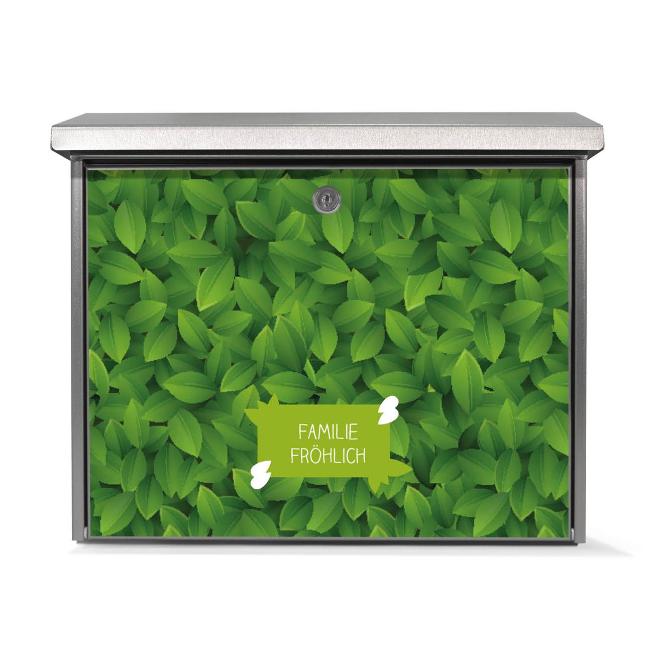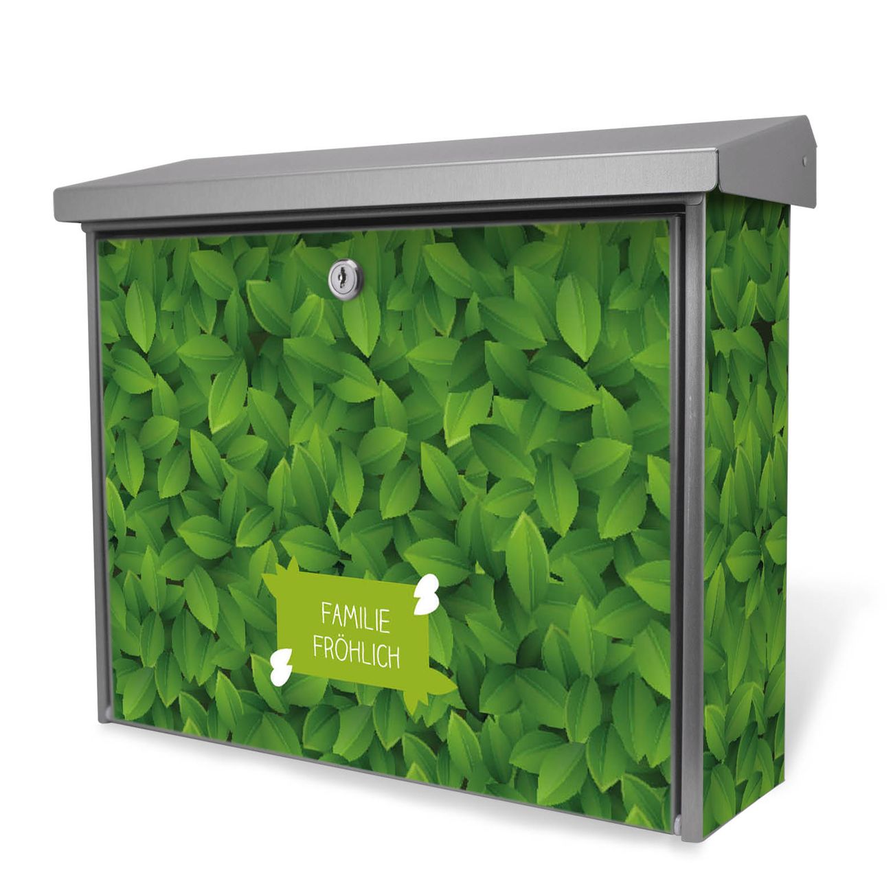 Der Postkasten mit Grüne Blätter Motiv hat ein sehr ansprechendes und zeitloses Design. Unsere Motivpalette hält jede Menge Varianten bereit, ob klassisch, modern, verspielt oder witzig - für jeden haben wir das passende Motiv parat. Der Briefkasten ist das Aushängeschild Ihres Hauses.