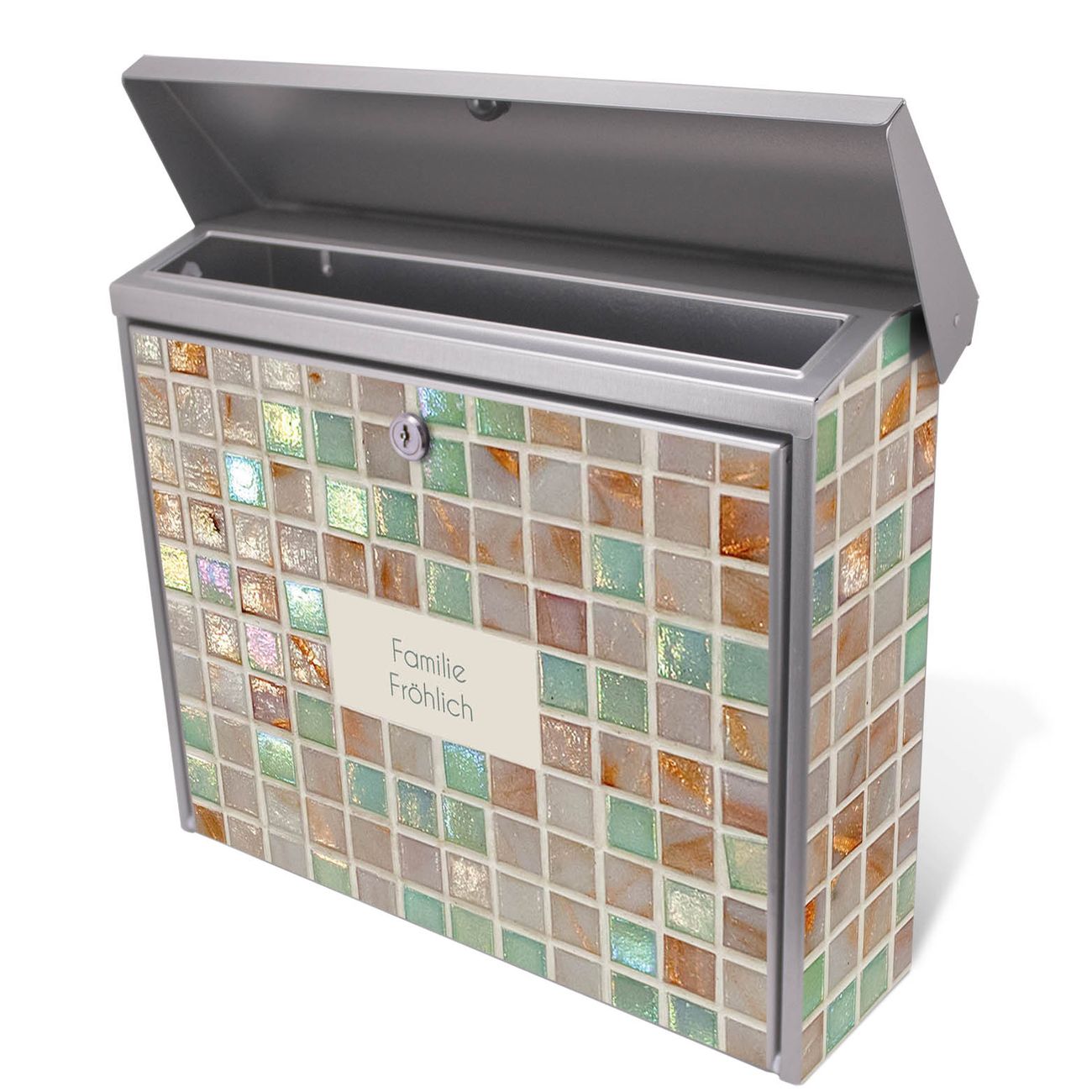 Der Postkasten mit Grüne Fliesen Motiv hat ein sehr ansprechendes und zeitloses Design. Unsere Motivpalette hält jede Menge Varianten bereit, ob klassisch, modern, verspielt oder witzig - für jeden haben wir das passende Motiv parat. Der Briefkasten ist das Aushängeschild Ihres Hauses.