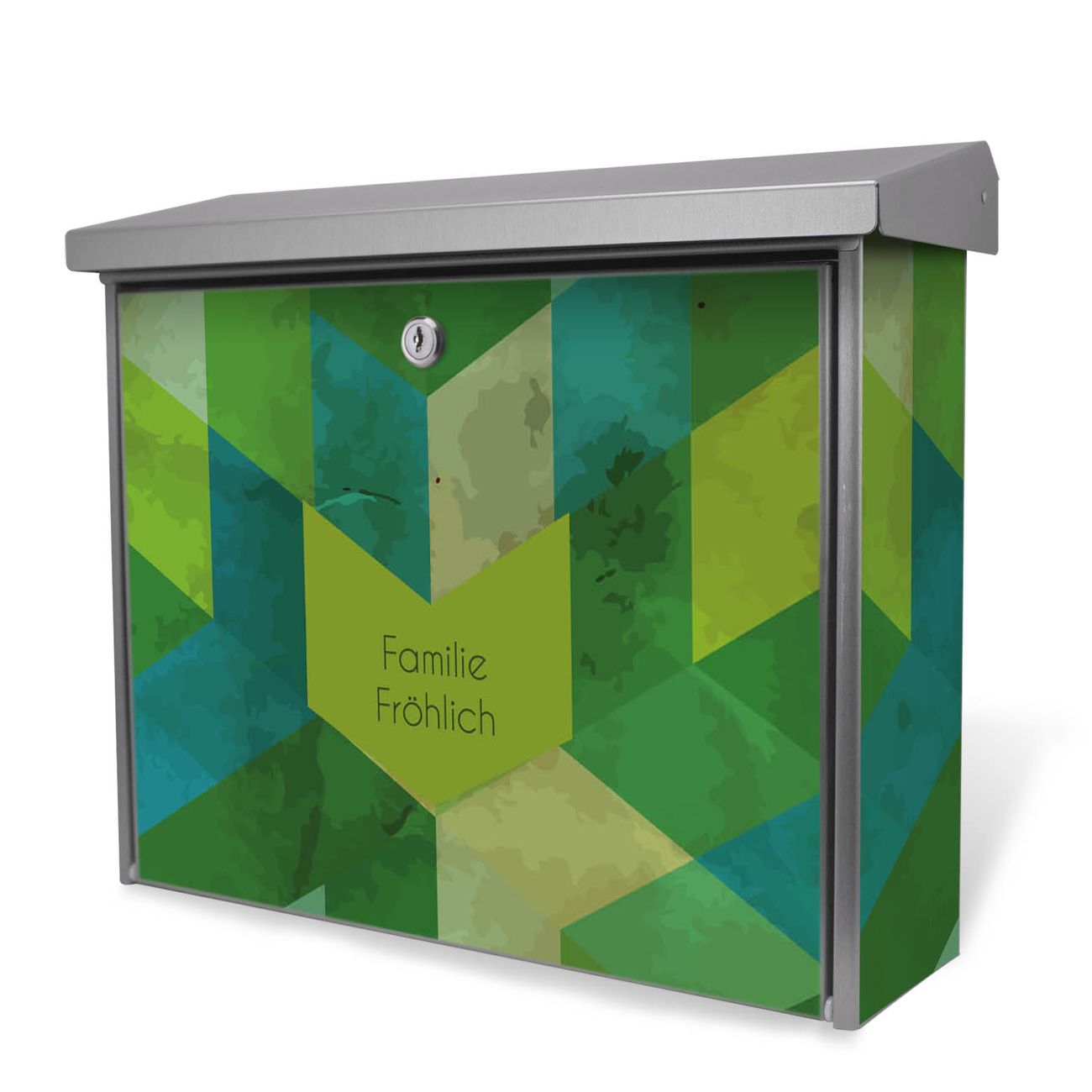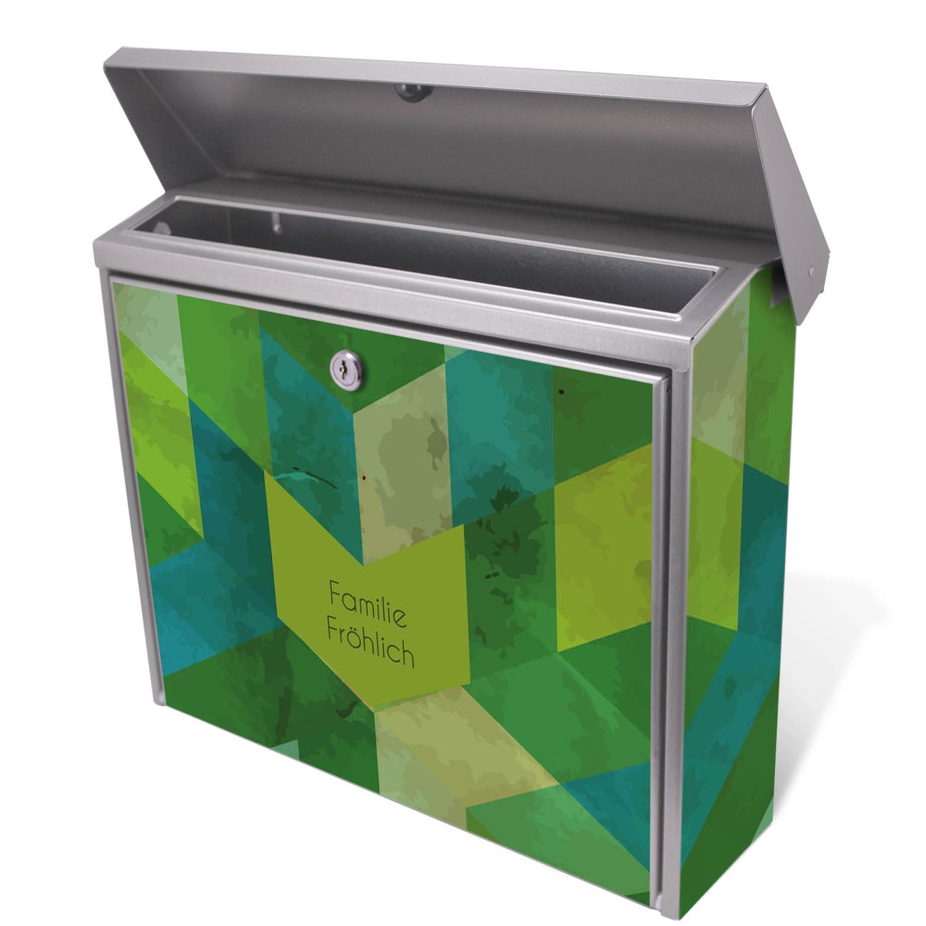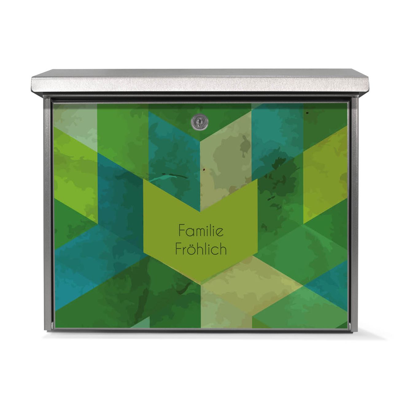 Der Postkasten mit Grüne Würfel Motiv hat ein sehr ansprechendes und zeitloses Design. Unsere Motivpalette hält jede Menge Varianten bereit, ob klassisch, modern, verspielt oder witzig - für jeden haben wir das passende Motiv parat. Der Briefkasten ist das Aushängeschild Ihres Hauses.