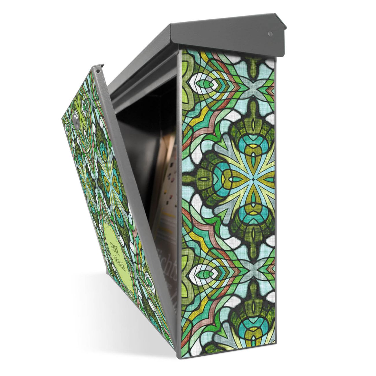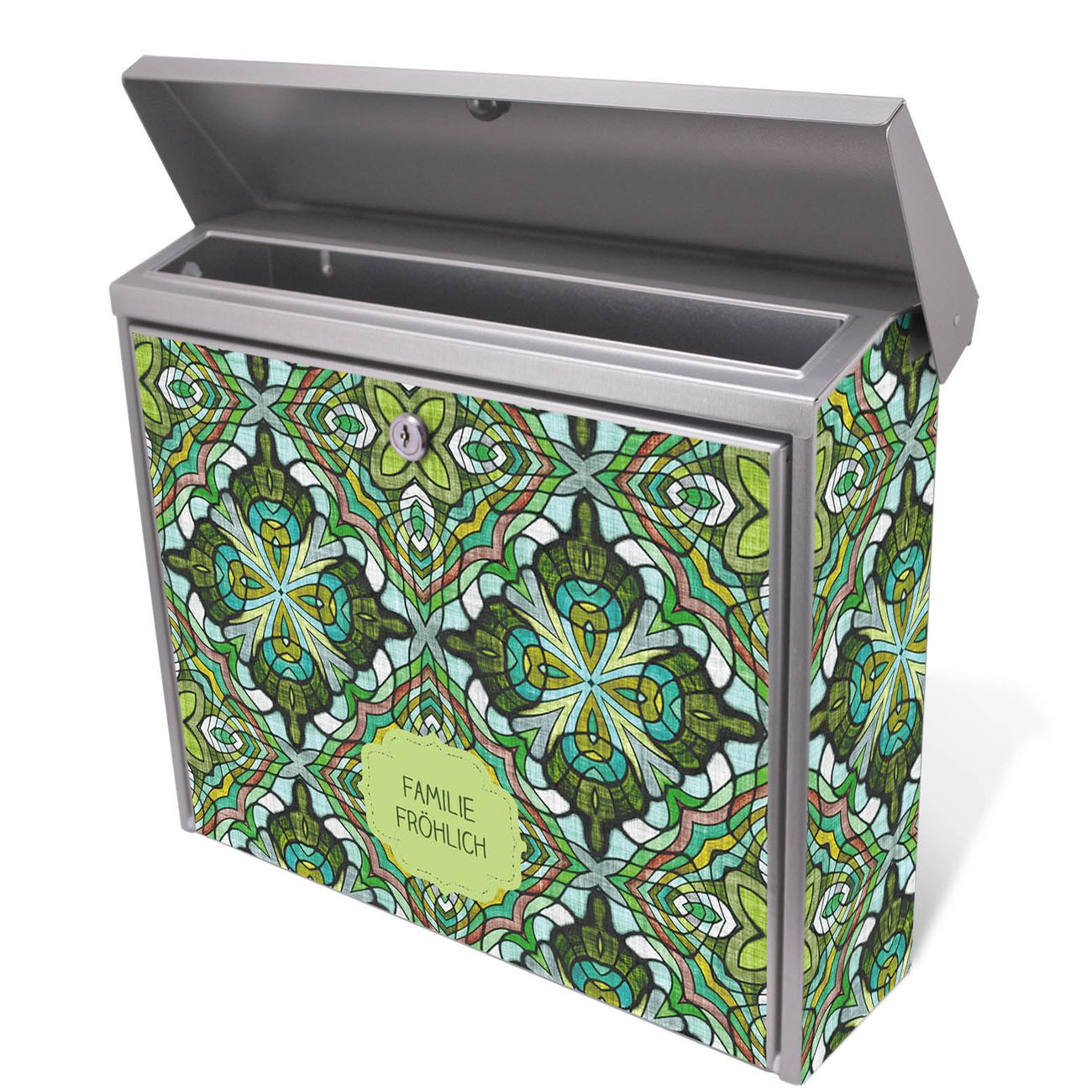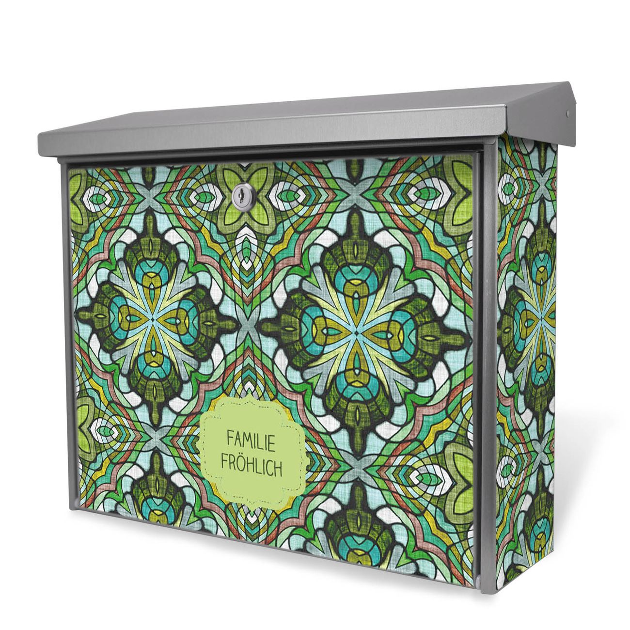 Der Postkasten mit Grünes Muster Motiv hat ein sehr ansprechendes und zeitloses Design. Unsere Motivpalette hält jede Menge Varianten bereit, ob klassisch, modern, verspielt oder witzig - für jeden haben wir das passende Motiv parat. Der Briefkasten ist das Aushängeschild Ihres Hauses.