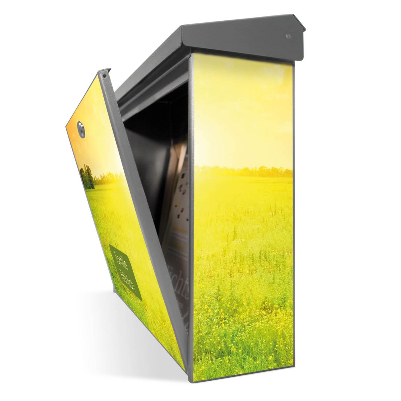 Sie können diesen Briefkasten sowohl als Wandbriefkasten montieren oder mit dem passenden Ständer als Standbriefkasten einbetonieren. Die gestaltete Motivfolie ist absolut wetterfest, UV-beständig und ein zusätzliches Schutzlaminat bewahrt Ihren Briefkasten vor unnötigen Kratzern.