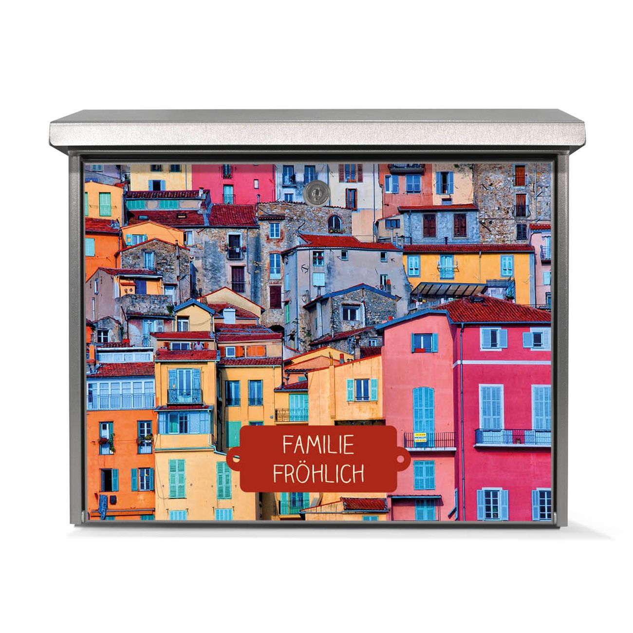 Der Postkasten mit Häuserberg Motiv hat ein sehr ansprechendes und zeitloses Design. Unsere Motivpalette hält jede Menge Varianten bereit, ob klassisch, modern, verspielt oder witzig - für jeden haben wir das passende Motiv parat. Der Briefkasten ist das Aushängeschild Ihres Hauses.
