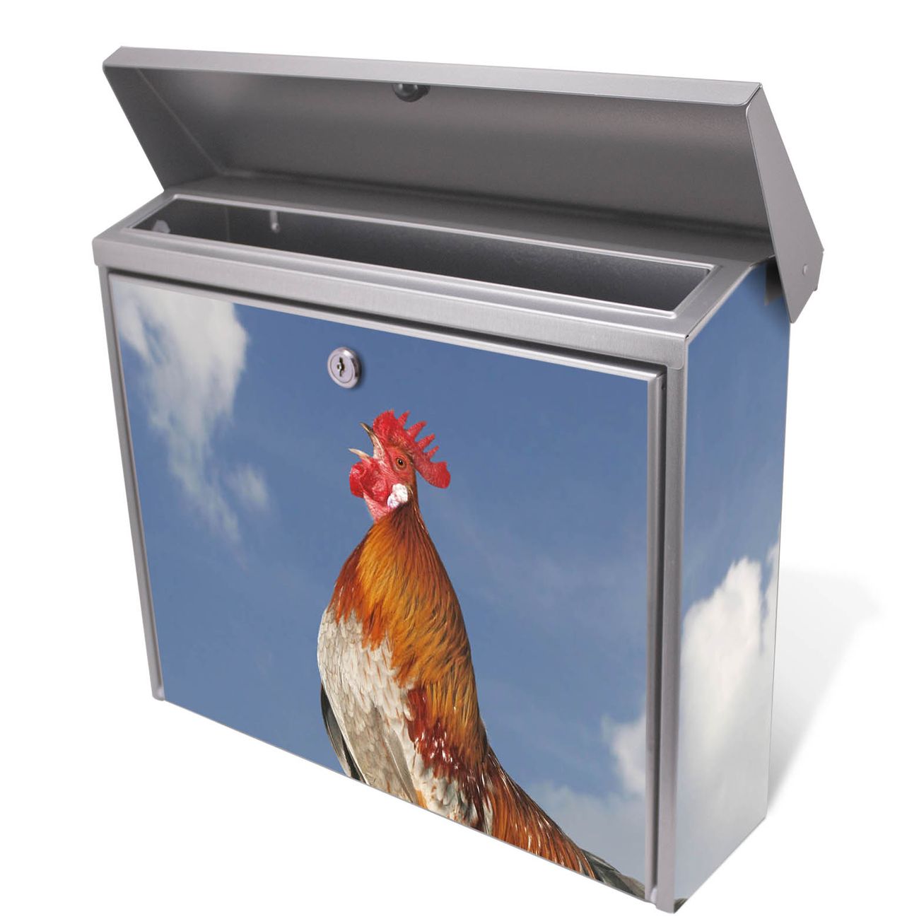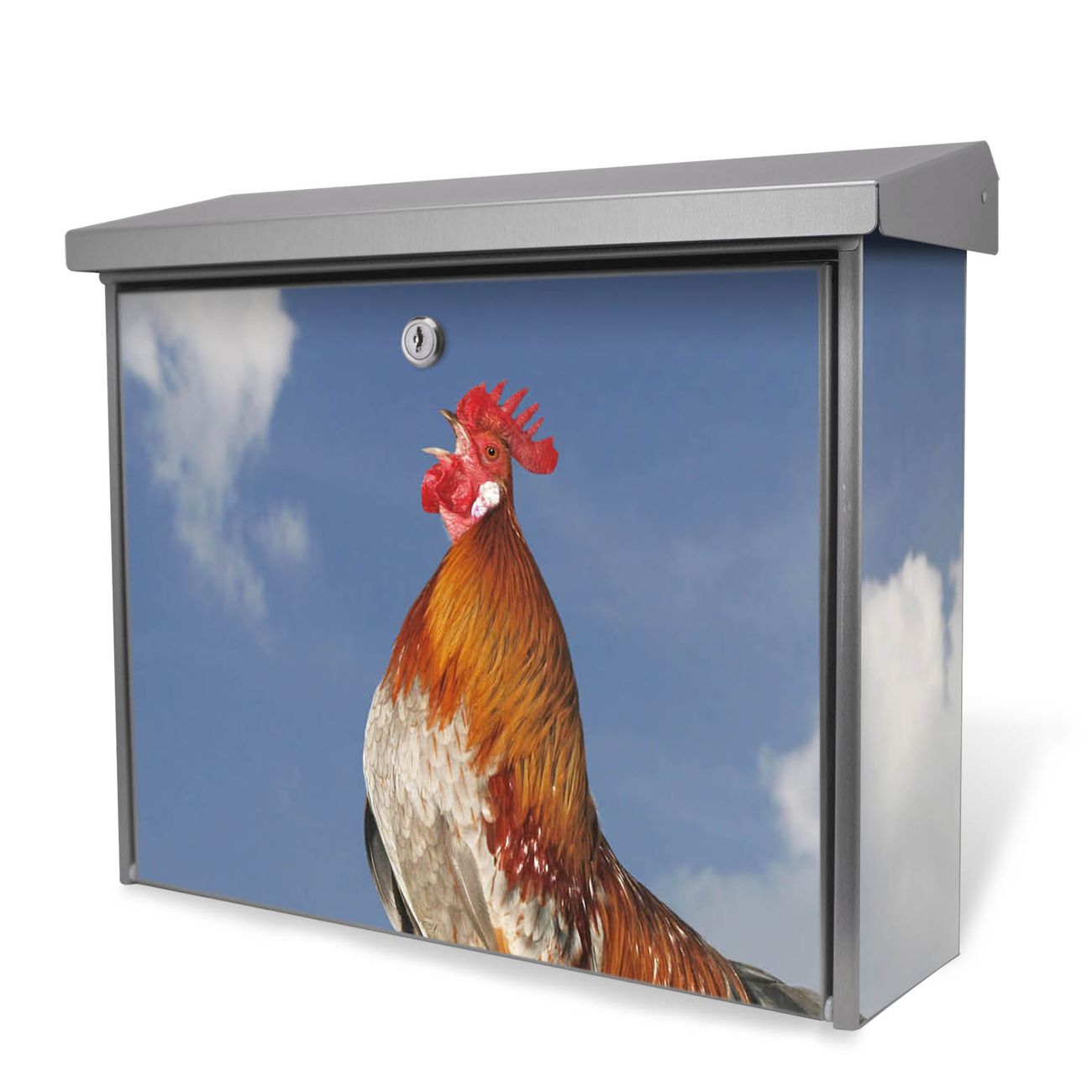 Der Postkasten mit Hahn Motiv hat ein sehr ansprechendes und zeitloses Design. Unsere Motivpalette hält jede Menge Varianten bereit, ob klassisch, modern, verspielt oder witzig - für jeden haben wir das passende Motiv parat. Der Briefkasten ist das Aushängeschild Ihres Hauses.