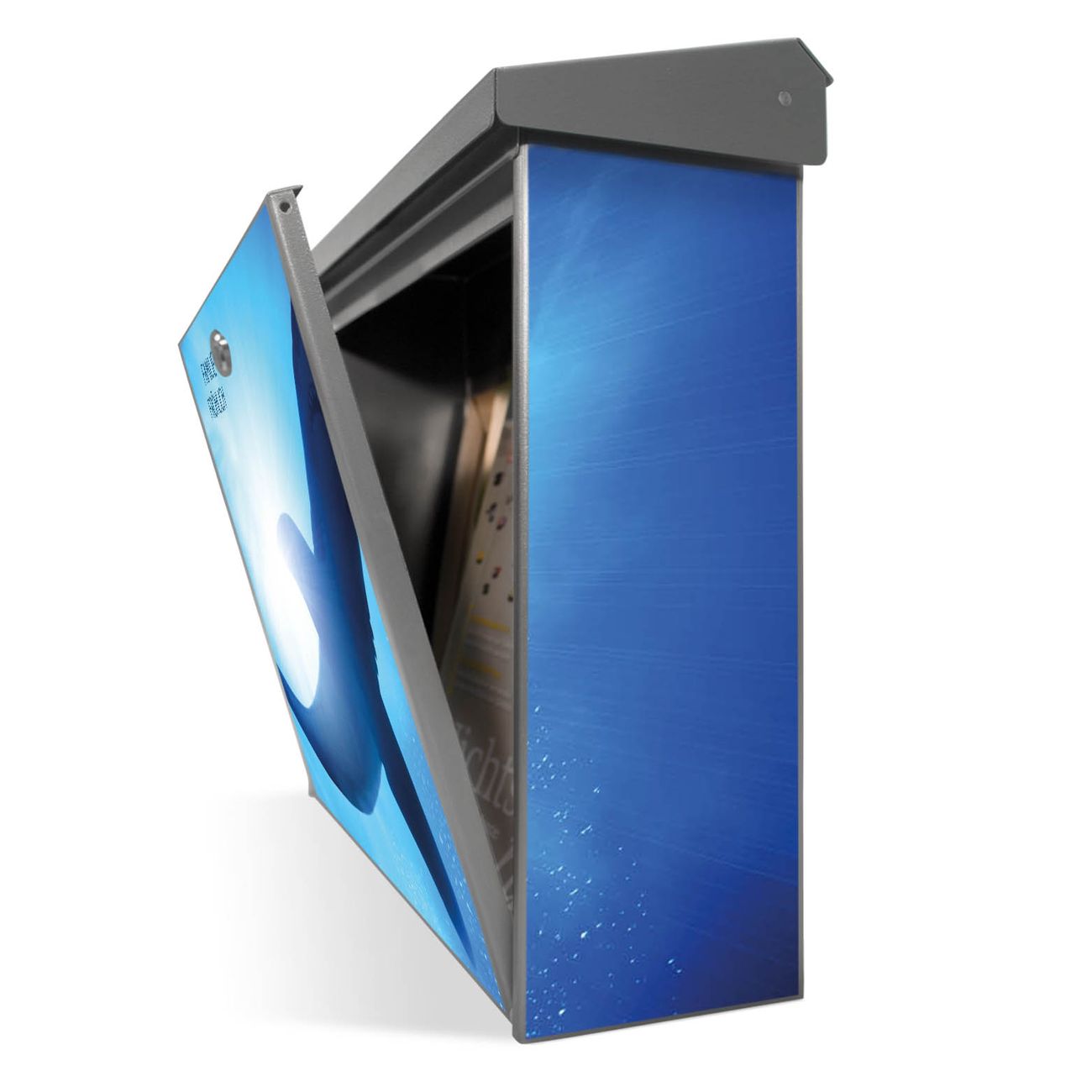 Sie können diesen Briefkasten sowohl als Wandbriefkasten montieren oder mit dem passenden Ständer als Standbriefkasten einbetonieren. Die gestaltete Motivfolie ist absolut wetterfest, UV-beständig und ein zusätzliches Schutzlaminat bewahrt Ihren Briefkasten vor unnötigen Kratzern.