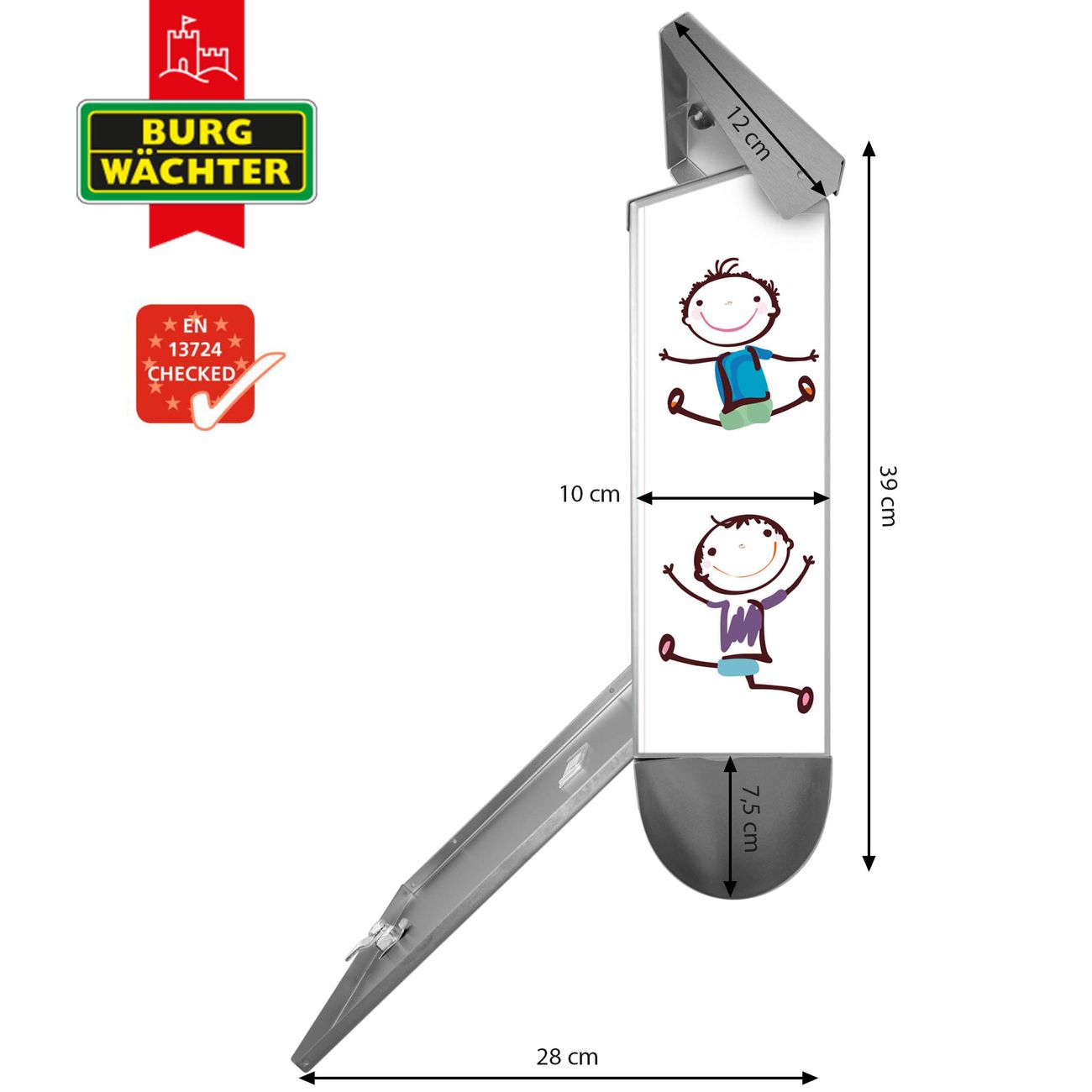 Der BURG-WÄCHTER Edelstahl Briefkasten mit Motiv Happy Kids und Zeitungsrolle bietet Ihnen mit seinem Fassungsvermögen genügend Platz auch für große A4 Sendungen und Zeitschriften. Das integrierte Regendach schützt Ihre Post vor dem Eindringen von Regen.