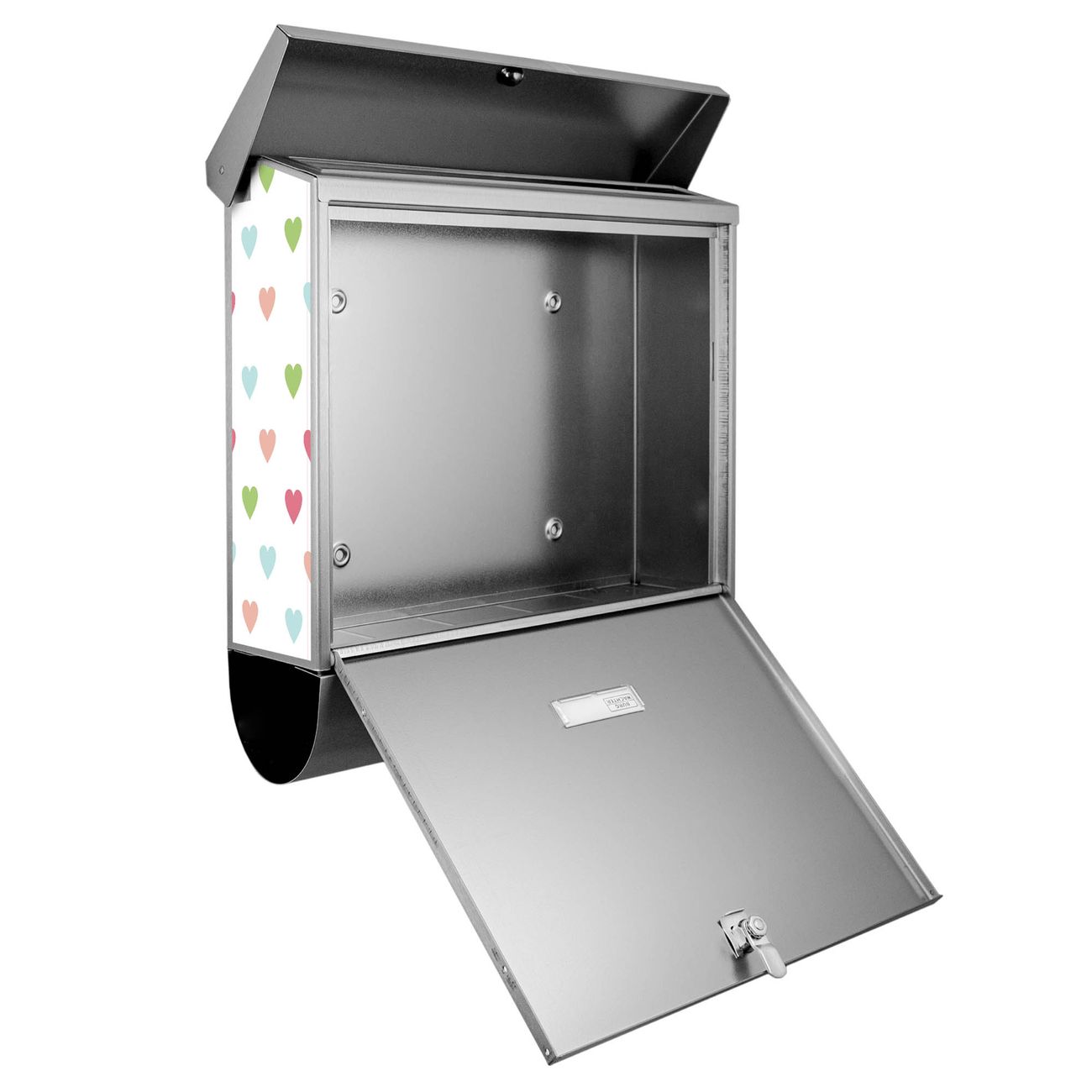 Der Herzen Auf Weiß Motivbriefkasten hat ein sehr ansprechendes und zeitloses Design. Unsere Motivpalette hält jede Menge Varianten bereit, ob klassisch, modern, verspielt oder witzig - für jeden haben wir das passende Motiv parat. Der Briefkasten mit Zeitungsfach ist Ihr Aushängeschild, heben Sie Sich ab ohne auf Funktionalität zu verzichten.