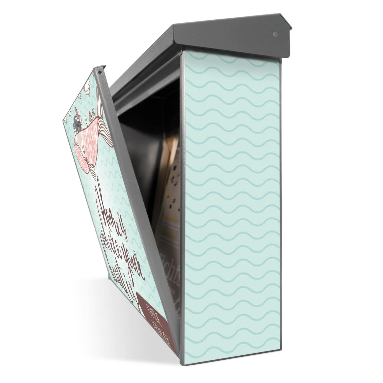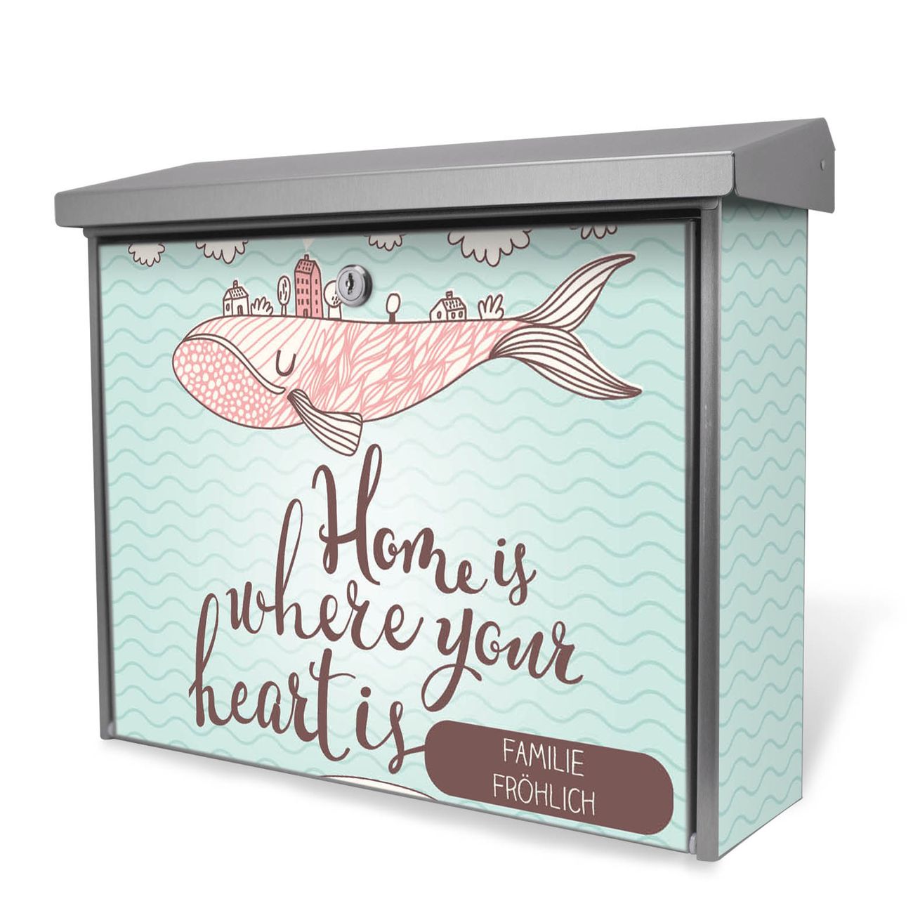 Sie können diesen Briefkasten sowohl als Wandbriefkasten montieren oder mit dem passenden Ständer als Standbriefkasten einbetonieren. Die gestaltete Motivfolie ist absolut wetterfest, UV-beständig und ein zusätzliches Schutzlaminat bewahrt Ihren Briefkasten vor unnötigen Kratzern.