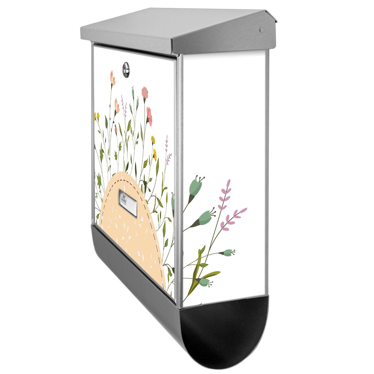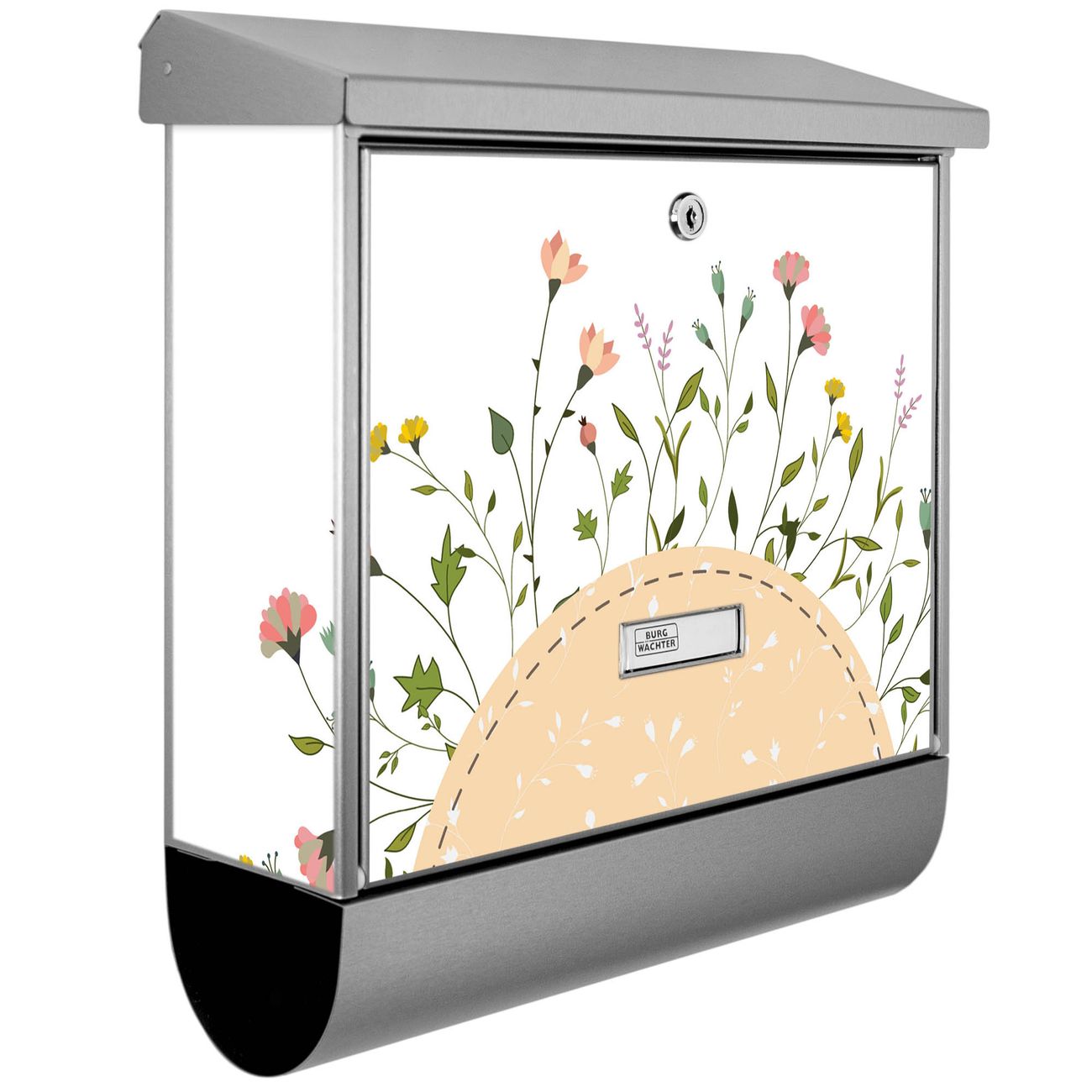 Der BURG-WÄCHTER Edelstahl Briefkasten mit Motiv Hibiskus Kreis und Zeitungsrolle bietet Ihnen mit seinem Fassungsvermögen genügend Platz auch für große A4 Sendungen und Zeitschriften. Das integrierte Regendach schützt Ihre Post vor dem Eindringen von Regen.