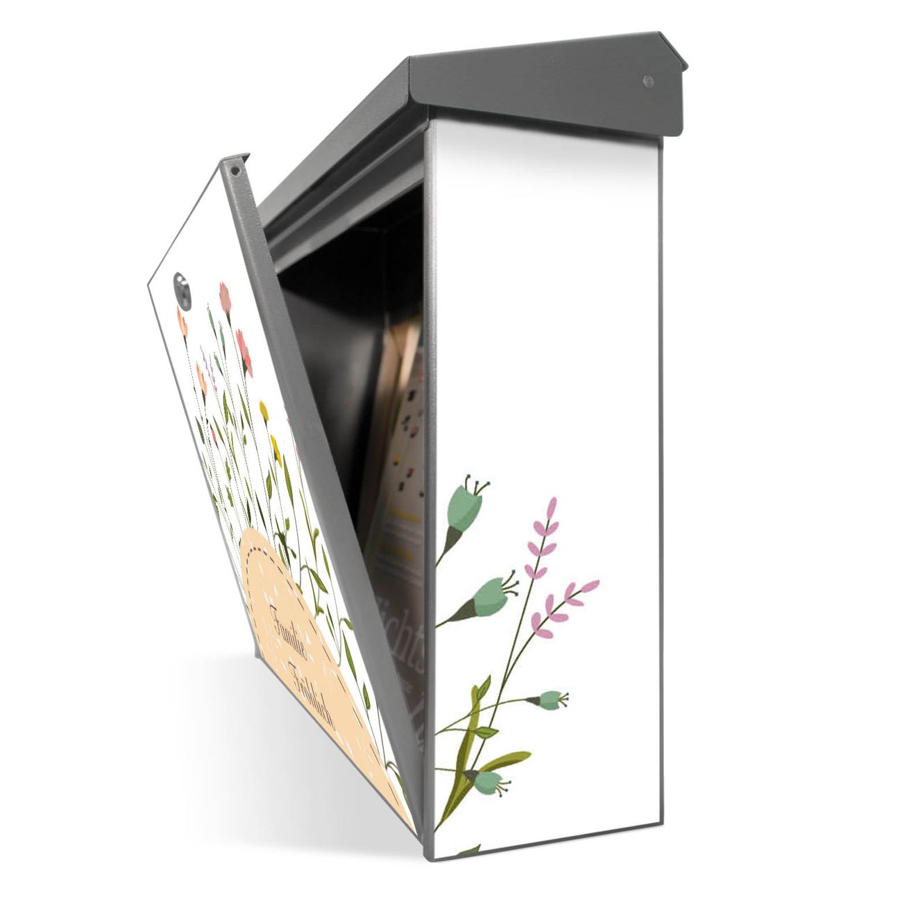 Sie können diesen Briefkasten sowohl als Wandbriefkasten montieren oder mit dem passenden Ständer als Standbriefkasten einbetonieren. Die gestaltete Motivfolie ist absolut wetterfest, UV-beständig und ein zusätzliches Schutzlaminat bewahrt Ihren Briefkasten vor unnötigen Kratzern.