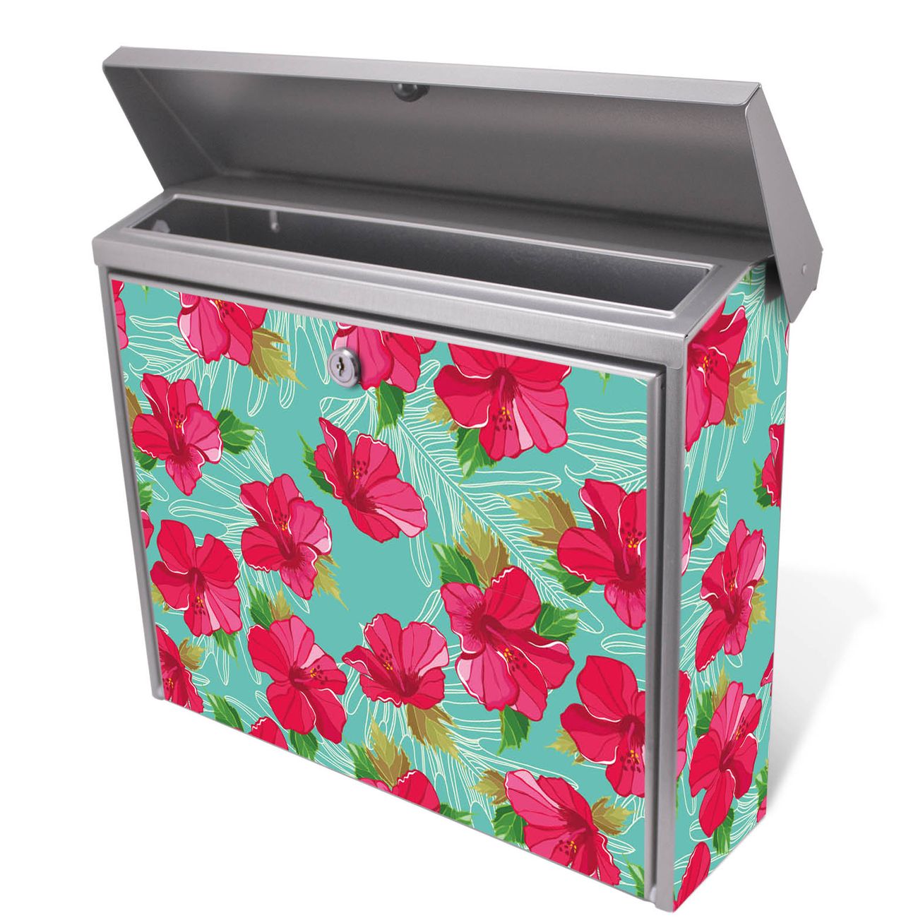 Der Postkasten mit Hibiskus Motiv hat ein sehr ansprechendes und zeitloses Design. Unsere Motivpalette hält jede Menge Varianten bereit, ob klassisch, modern, verspielt oder witzig - für jeden haben wir das passende Motiv parat. Der Briefkasten ist das Aushängeschild Ihres Hauses.