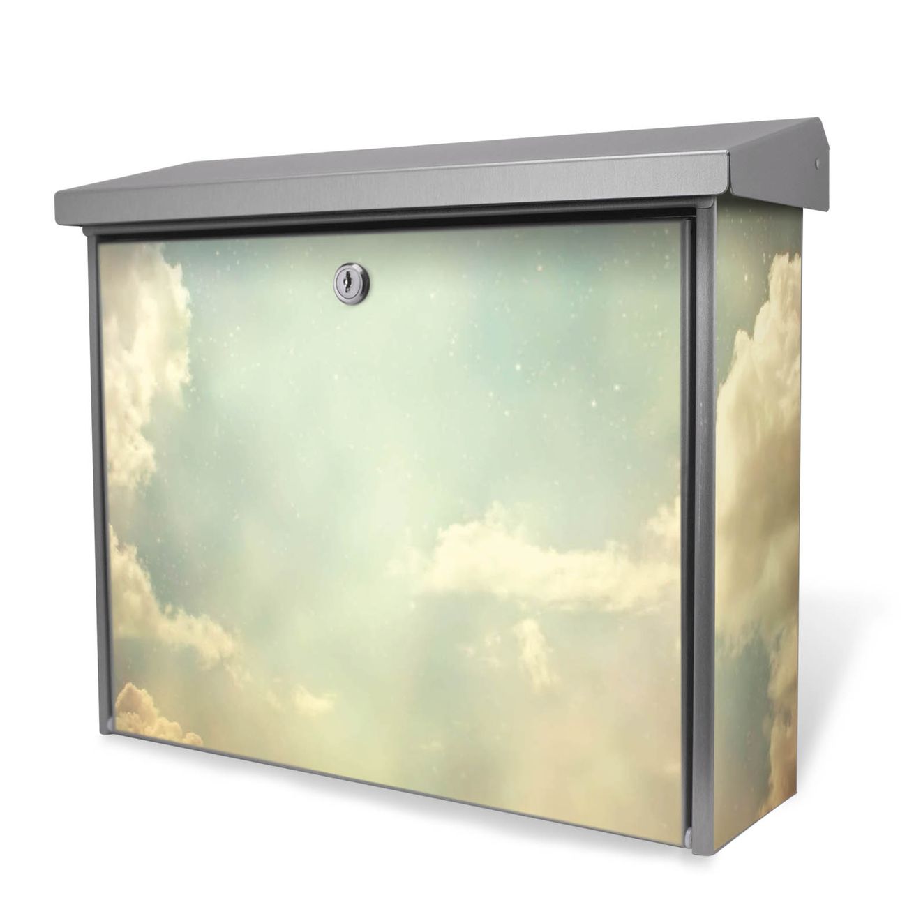 Der Postkasten mit Himmel Vintage Motiv hat ein sehr ansprechendes und zeitloses Design. Unsere Motivpalette hält jede Menge Varianten bereit, ob klassisch, modern, verspielt oder witzig - für jeden haben wir das passende Motiv parat. Der Briefkasten ist das Aushängeschild Ihres Hauses.
