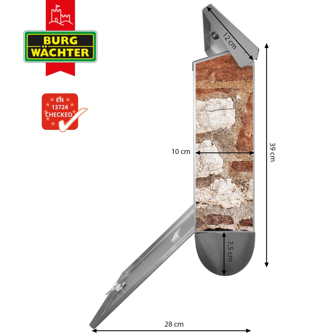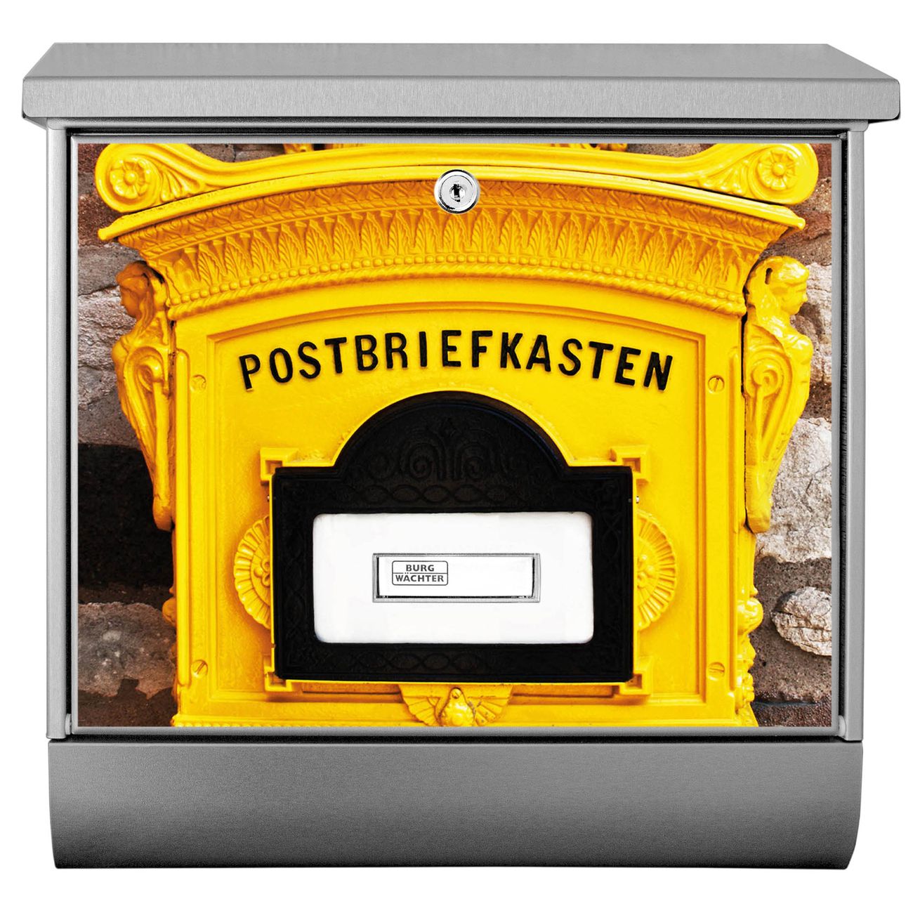 Der BURG-WÄCHTER Edelstahl Briefkasten mit Motiv Historischer Postkasten und Zeitungsrolle bietet Ihnen mit seinem Fassungsvermögen genügend Platz auch für große A4 Sendungen und Zeitschriften. Das integrierte Regendach schützt Ihre Post vor dem Eindringen von Regen.