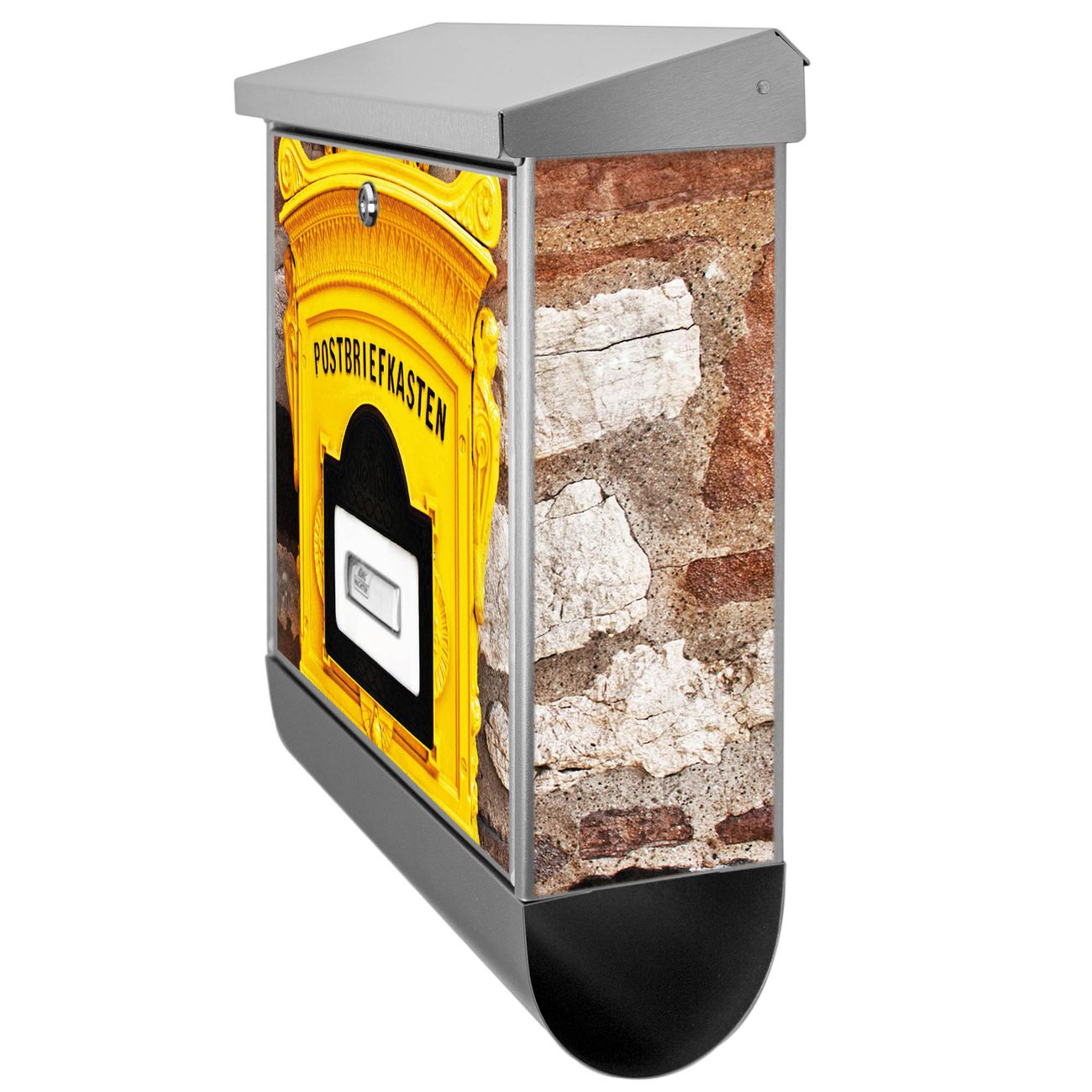 Der Briefkasten besteht aus Edelstahl, einem hochwertigen Material das rostfrei und äußerst unempfindlich gegenüber Witterungseinflüssen ist. Das Motiv besteht aus einer wetter- und UV-festen Folie, die Ihren Briefkasten zusätzlich vor Kratzern schützt. Der Postkasten ist je nach Auswahl 38 x 39 x 12 CM oder 38 x 31,5 x 12 cm (BxHxT) groß. Der Briefeinwurf ist 33,2cm x 3,1cm, Format DIN C4. Der Briefkasten wird mit Montagematerial und zwei Schlüsseln geliefert.