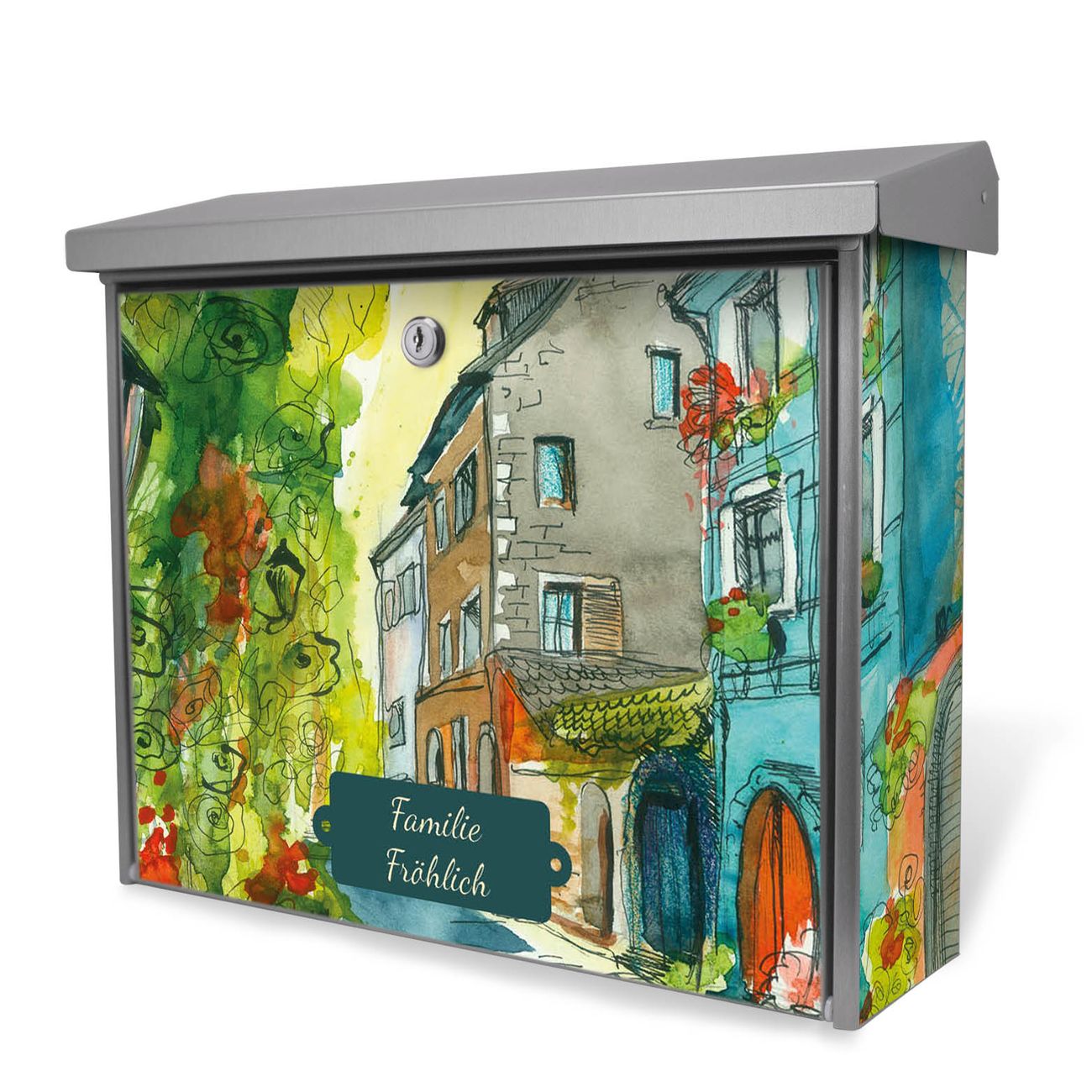 Der Postkasten mit Historischer Stadtkern Motiv hat ein sehr ansprechendes und zeitloses Design. Unsere Motivpalette hält jede Menge Varianten bereit, ob klassisch, modern, verspielt oder witzig - für jeden haben wir das passende Motiv parat. Der Briefkasten ist das Aushängeschild Ihres Hauses.