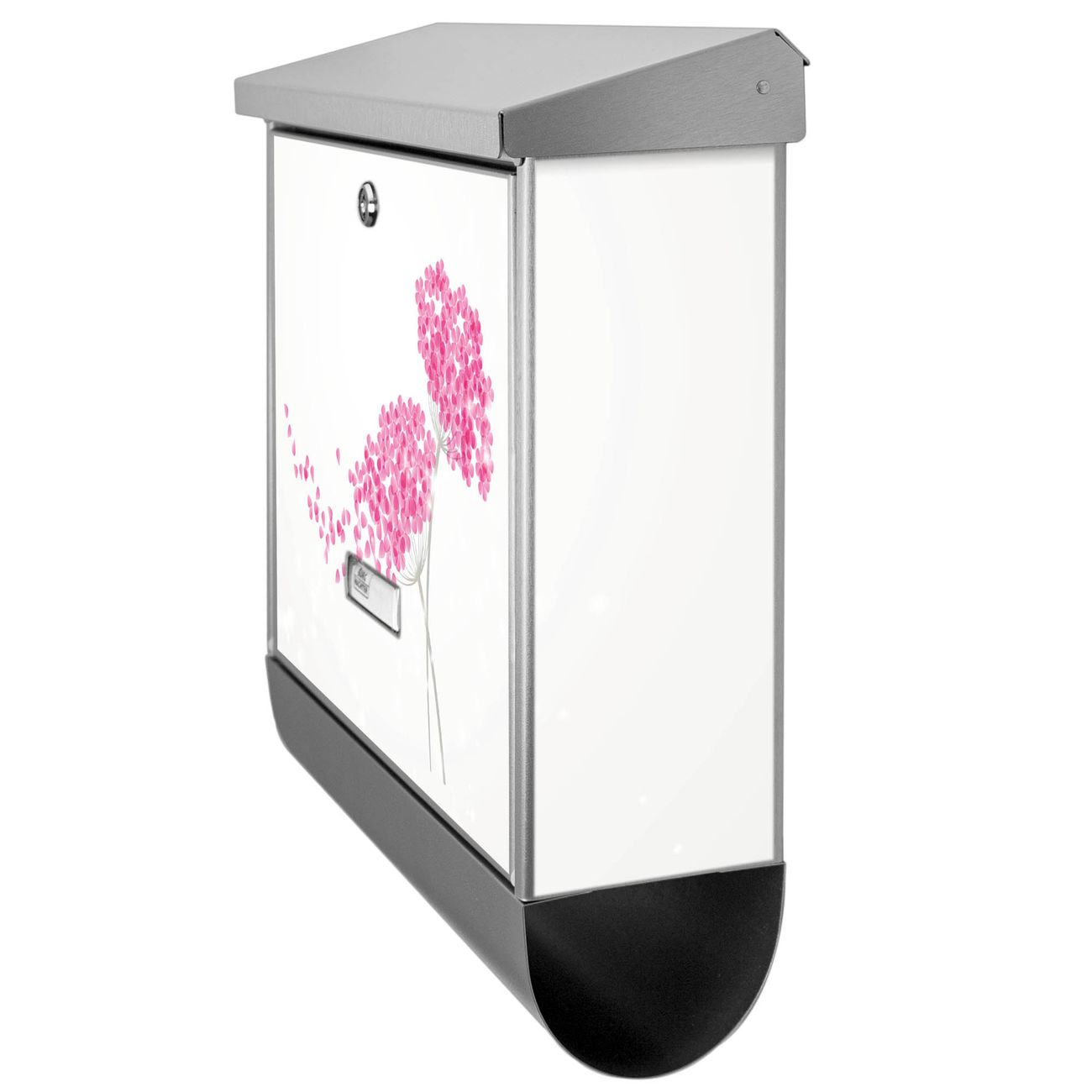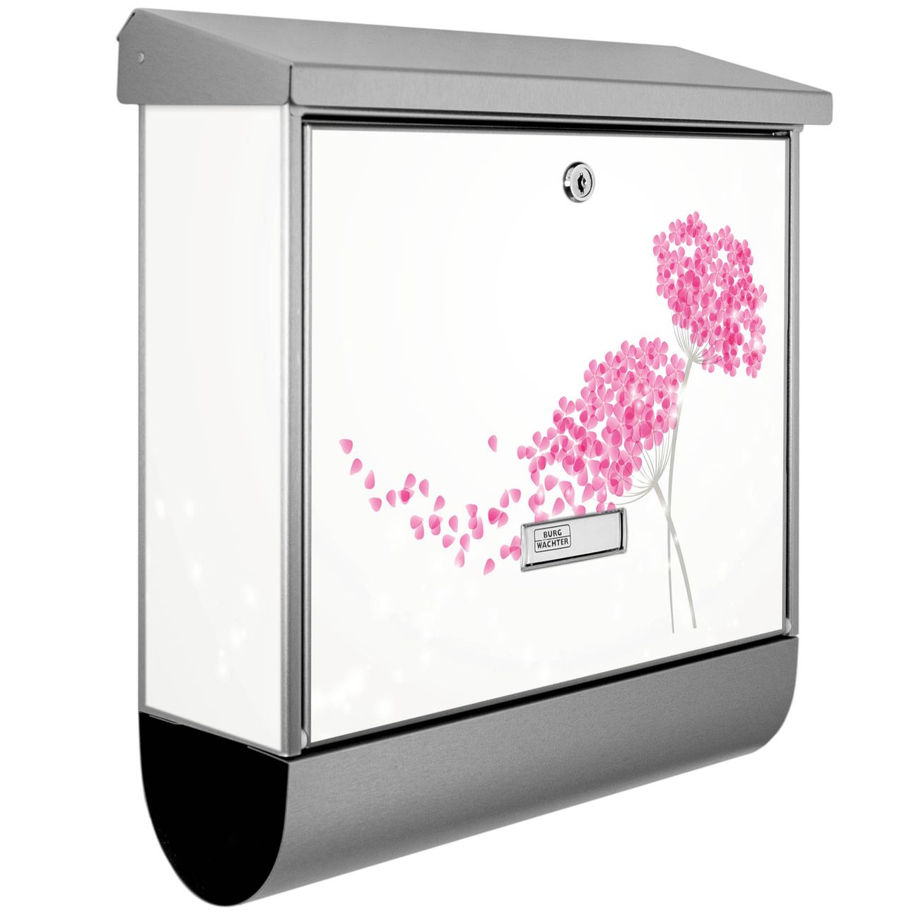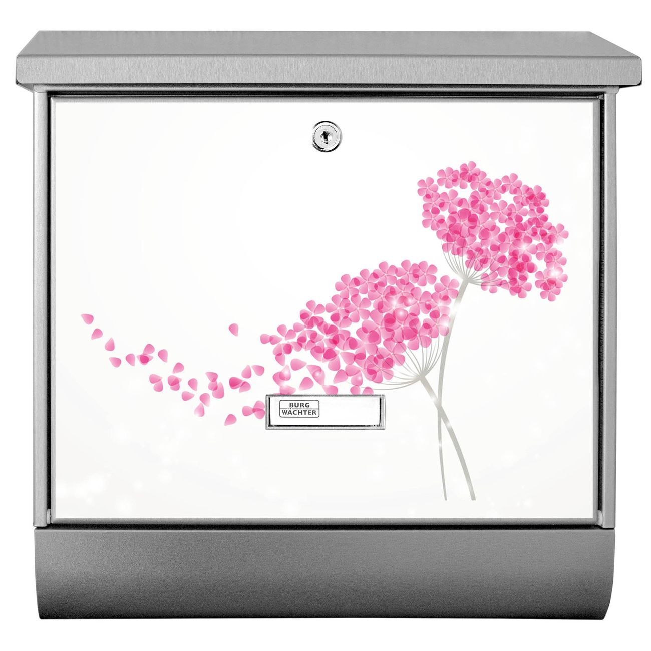 Der BURG-WÄCHTER Edelstahl Briefkasten mit Motiv Holunder Pink und Zeitungsrolle bietet Ihnen mit seinem Fassungsvermögen genügend Platz auch für große A4 Sendungen und Zeitschriften. Das integrierte Regendach schützt Ihre Post vor dem Eindringen von Regen.