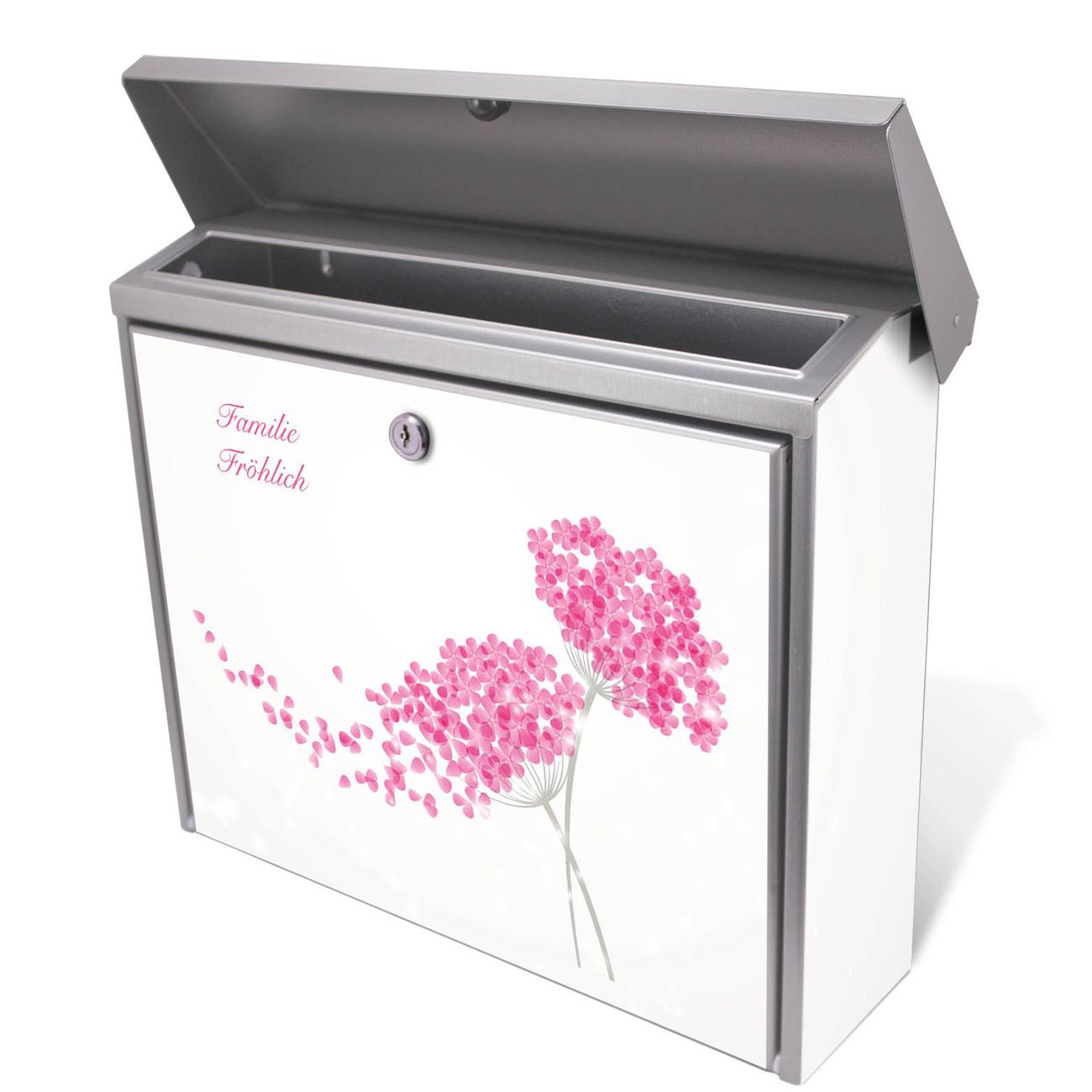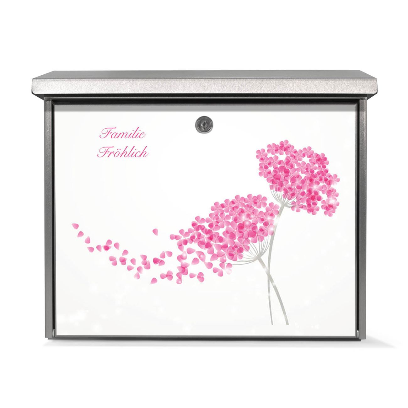 Der Postkasten mit Holunder Pink Motiv hat ein sehr ansprechendes und zeitloses Design. Unsere Motivpalette hält jede Menge Varianten bereit, ob klassisch, modern, verspielt oder witzig - für jeden haben wir das passende Motiv parat. Der Briefkasten ist das Aushängeschild Ihres Hauses.