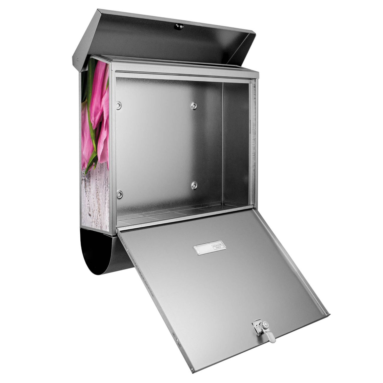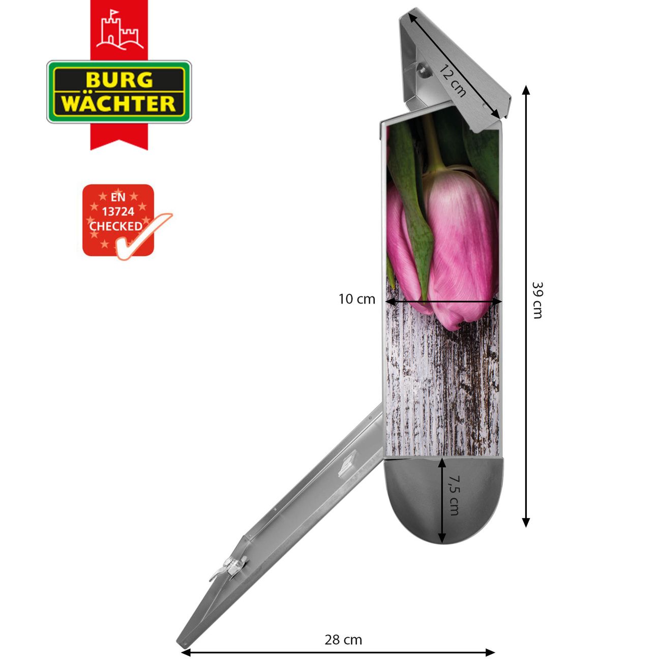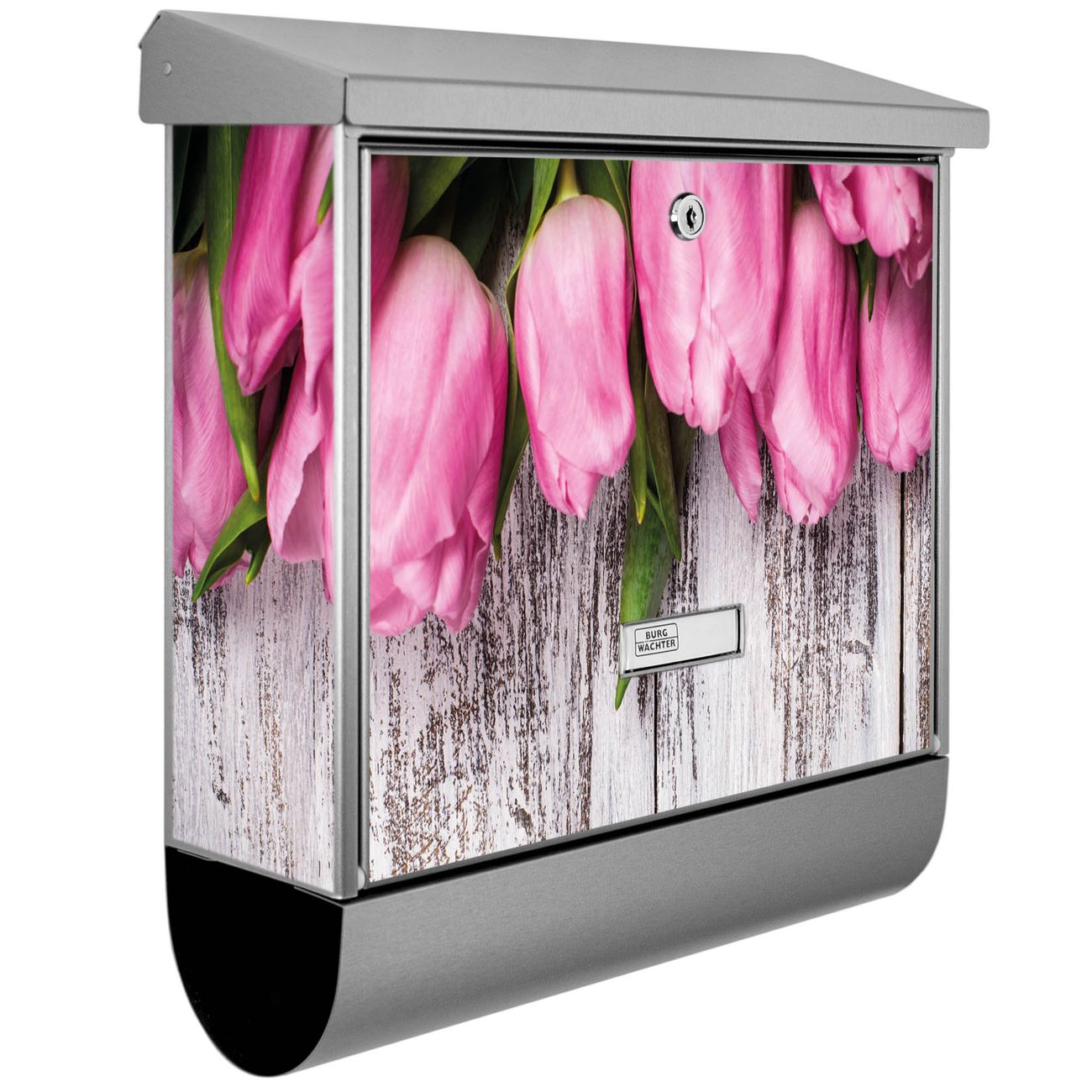 Der BURG-WÄCHTER Edelstahl Briefkasten mit Motiv Holz und Tulpen und Zeitungsrolle bietet Ihnen mit seinem Fassungsvermögen genügend Platz auch für große A4 Sendungen und Zeitschriften. Das integrierte Regendach schützt Ihre Post vor dem Eindringen von Regen.