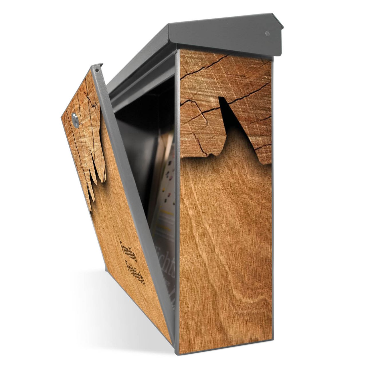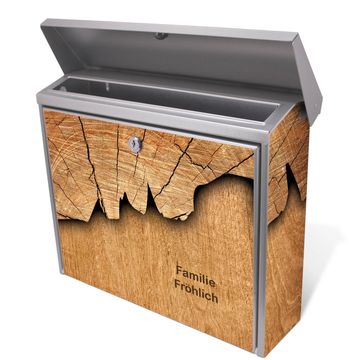 Der Postkasten mit Holz Motiv hat ein sehr ansprechendes und zeitloses Design. Unsere Motivpalette hält jede Menge Varianten bereit, ob klassisch, modern, verspielt oder witzig - für jeden haben wir das passende Motiv parat. Der Briefkasten ist das Aushängeschild Ihres Hauses.