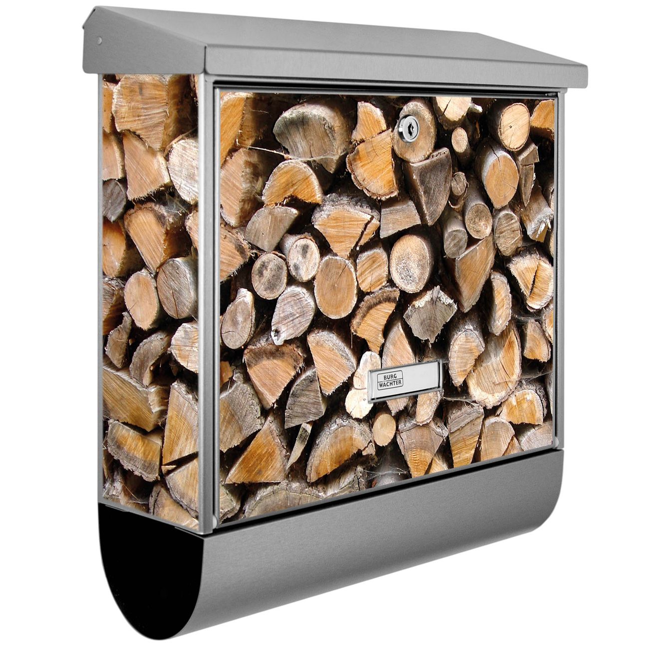 Der BURG-WÄCHTER Edelstahl Briefkasten mit Motiv Holzstapel und Zeitungsrolle bietet Ihnen mit seinem Fassungsvermögen genügend Platz auch für große A4 Sendungen und Zeitschriften. Das integrierte Regendach schützt Ihre Post vor dem Eindringen von Regen.