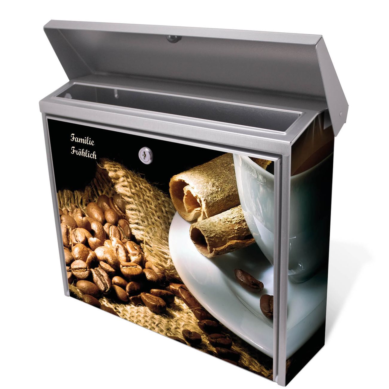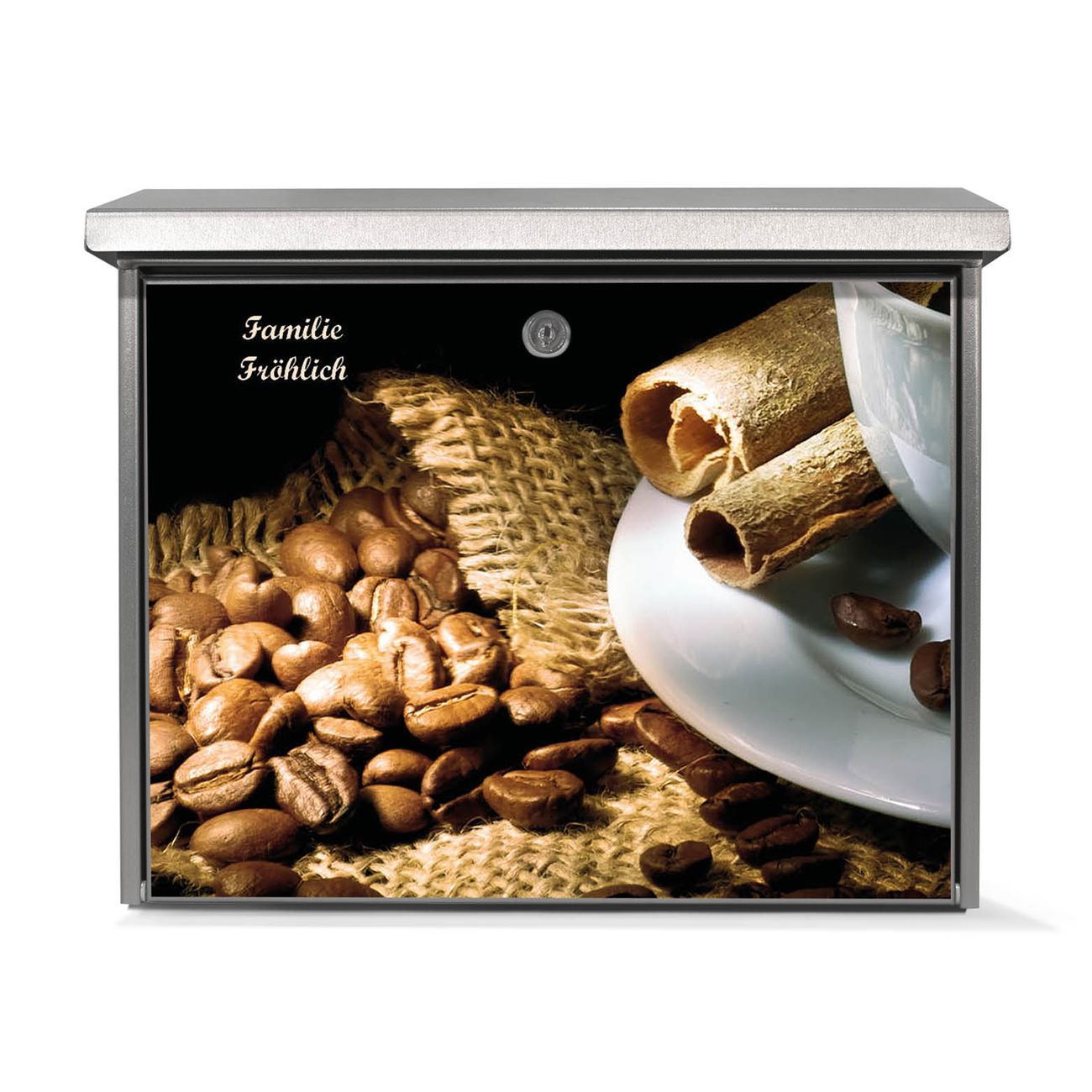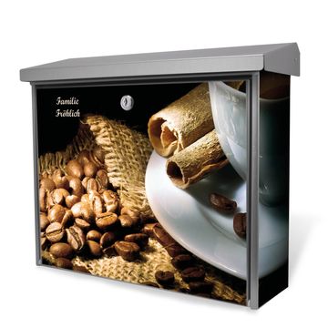 Der Postkasten mit Hot Coffee Motiv hat ein sehr ansprechendes und zeitloses Design. Unsere Motivpalette hält jede Menge Varianten bereit, ob klassisch, modern, verspielt oder witzig - für jeden haben wir das passende Motiv parat. Der Briefkasten ist das Aushängeschild Ihres Hauses.