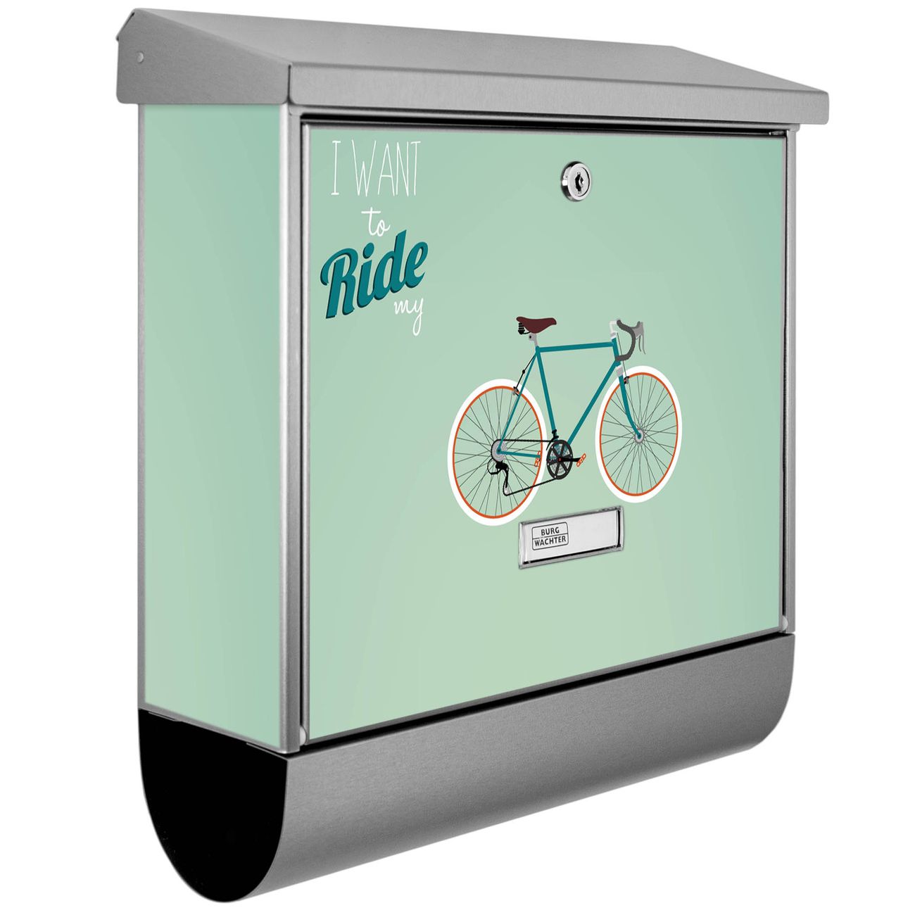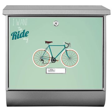 Der I want to ride my bike Motivbriefkasten hat ein sehr ansprechendes und zeitloses Design. Unsere Motivpalette hält jede Menge Varianten bereit, ob klassisch, modern, verspielt oder witzig - für jeden haben wir das passende Motiv parat. Der Briefkasten mit Zeitungsfach ist Ihr Aushängeschild, heben Sie Sich ab ohne auf Funktionalität zu verzichten.