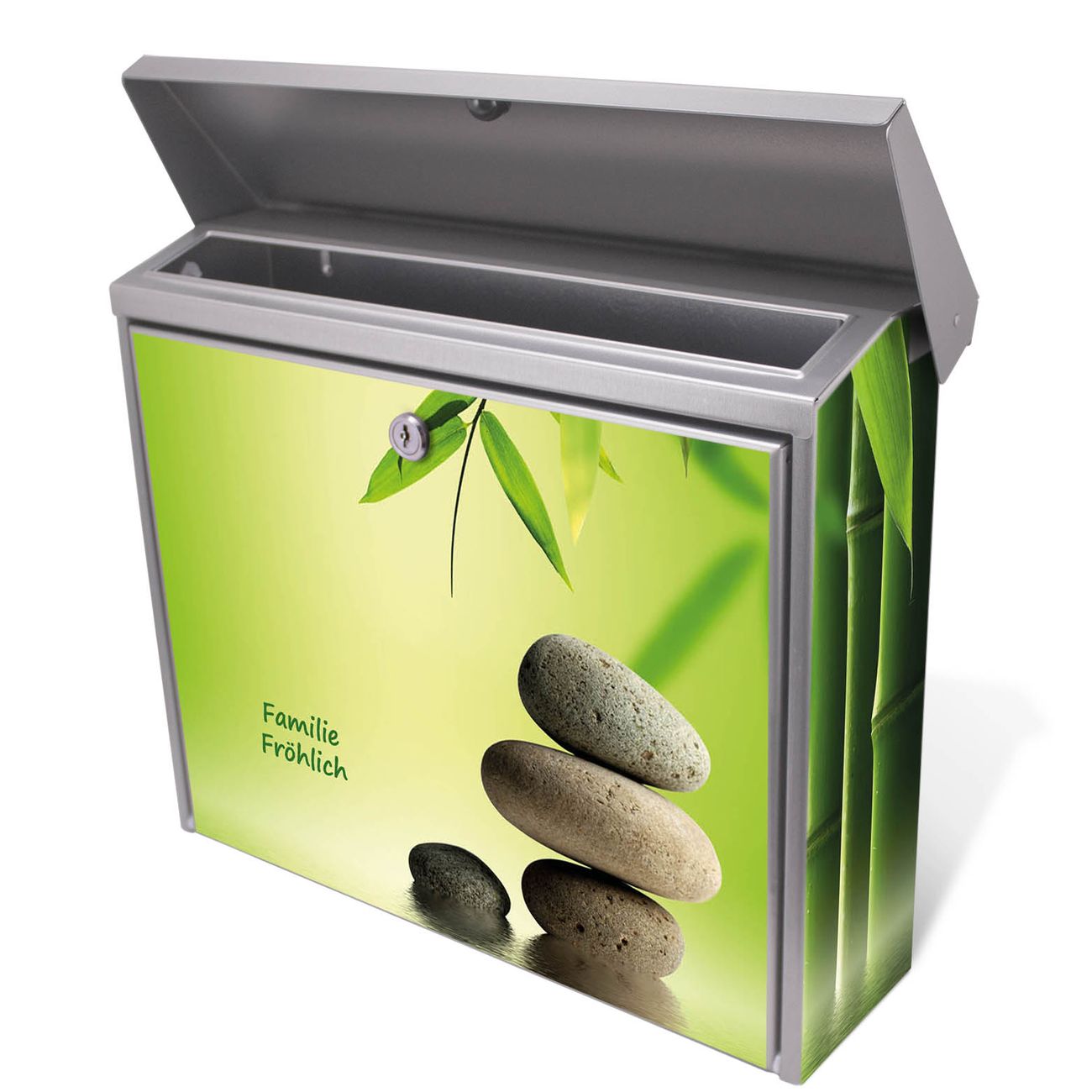 Der Postkasten mit Innere Ruhe Motiv hat ein sehr ansprechendes und zeitloses Design. Unsere Motivpalette hält jede Menge Varianten bereit, ob klassisch, modern, verspielt oder witzig - für jeden haben wir das passende Motiv parat. Der Briefkasten ist das Aushängeschild Ihres Hauses.