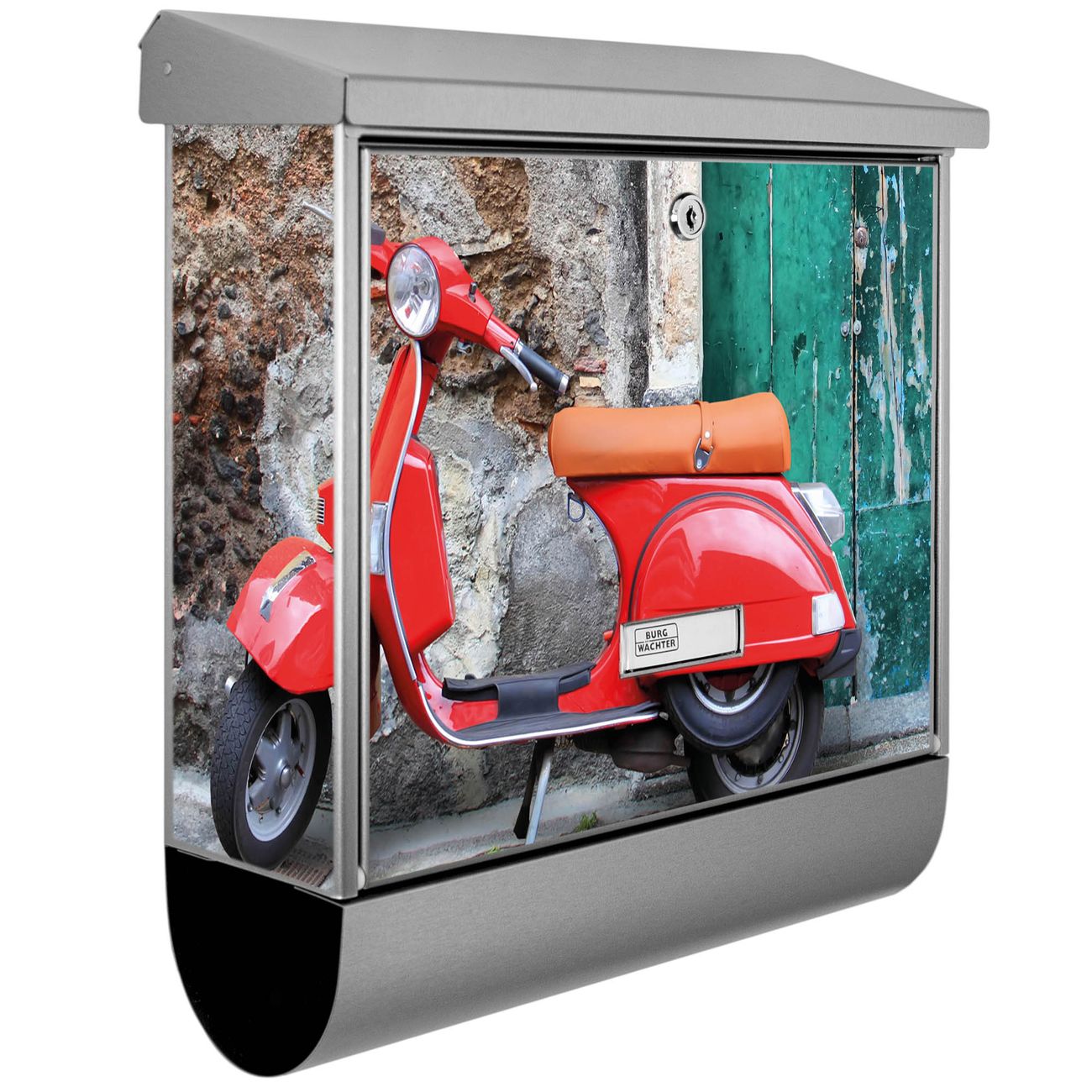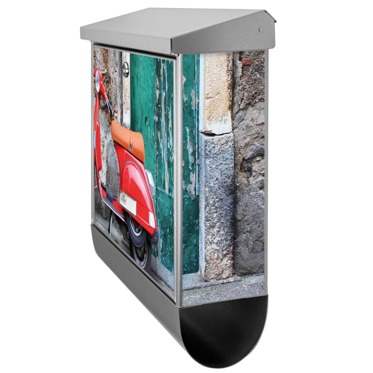 Der Italienischer Roller Motivbriefkasten hat ein sehr ansprechendes und zeitloses Design. Unsere Motivpalette hält jede Menge Varianten bereit, ob klassisch, modern, verspielt oder witzig - für jeden haben wir das passende Motiv parat. Der Briefkasten mit Zeitungsfach ist Ihr Aushängeschild, heben Sie Sich ab ohne auf Funktionalität zu verzichten.