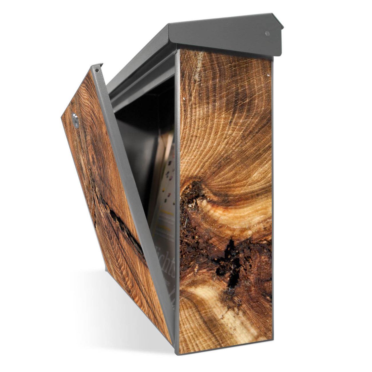 Der Postkasten mit Jahresringe Motiv hat ein sehr ansprechendes und zeitloses Design. Unsere Motivpalette hält jede Menge Varianten bereit, ob klassisch, modern, verspielt oder witzig - für jeden haben wir das passende Motiv parat. Der Briefkasten ist das Aushängeschild Ihres Hauses.