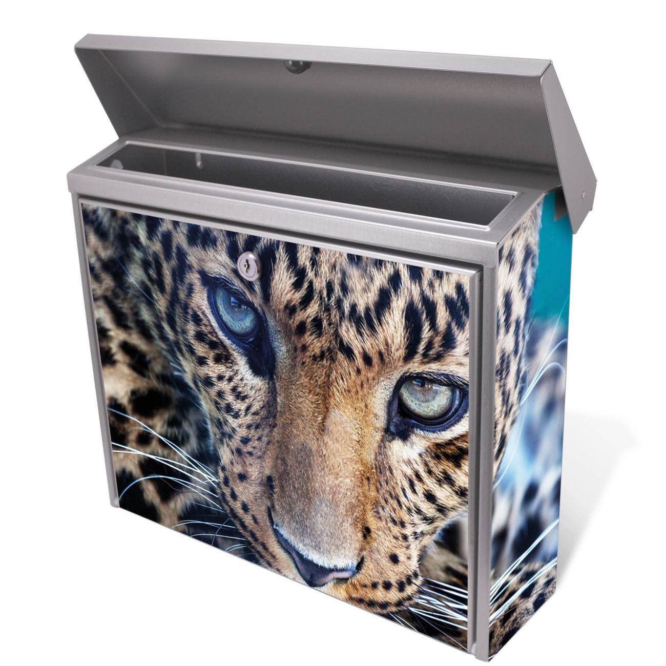 Der Briefkasten besteht aus Edelstahl, einem hochwertigen Material das witterungsbeständig ist. Das Motiv besteht aus einer wetter- und UV-festen Folie, die Ihren Briefkasten zusätzlich vor Kratzern schützt. Der Postkasten ist 31,5cm hoch, 38,5cm breit und 12cm tief. Der Briefeinwurf ist 33,2cm x 2,7cm, Format DIN C4. Der Briefkasten wird mit Montagematerial und zwei Schlüsseln geliefert.