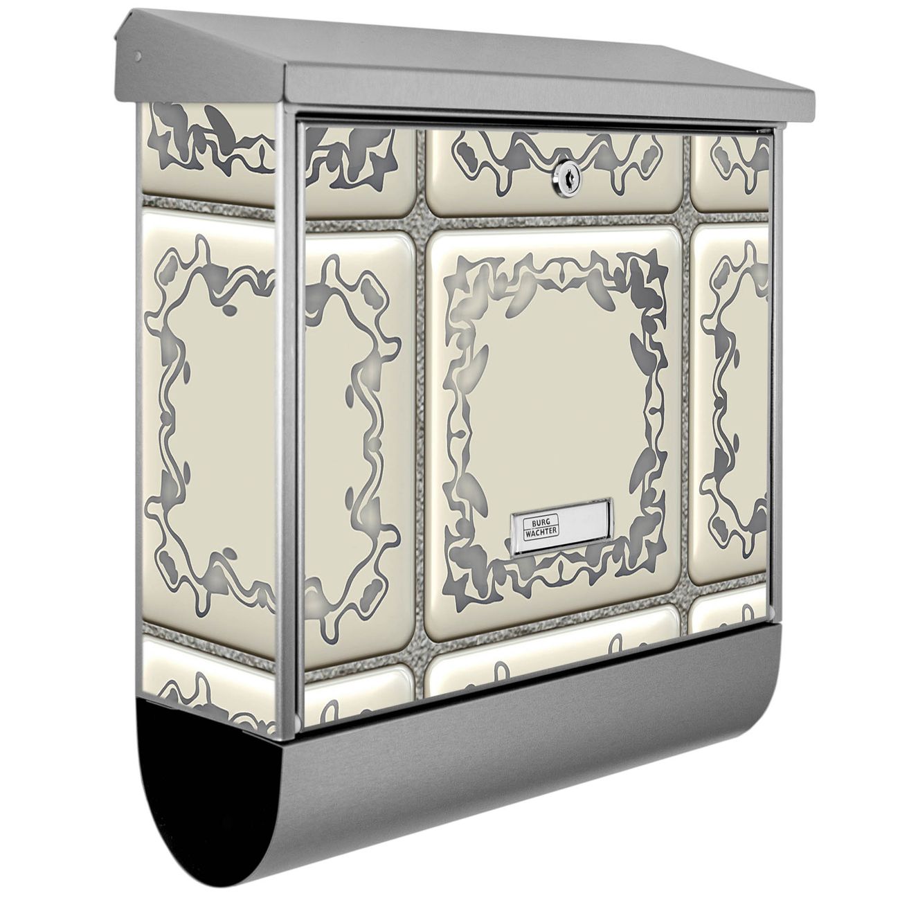 Der BURG-WÄCHTER Edelstahl Briefkasten mit Motiv Kacheln und Zeitungsrolle bietet Ihnen mit seinem Fassungsvermögen genügend Platz auch für große A4 Sendungen und Zeitschriften. Das integrierte Regendach schützt Ihre Post vor dem Eindringen von Regen.