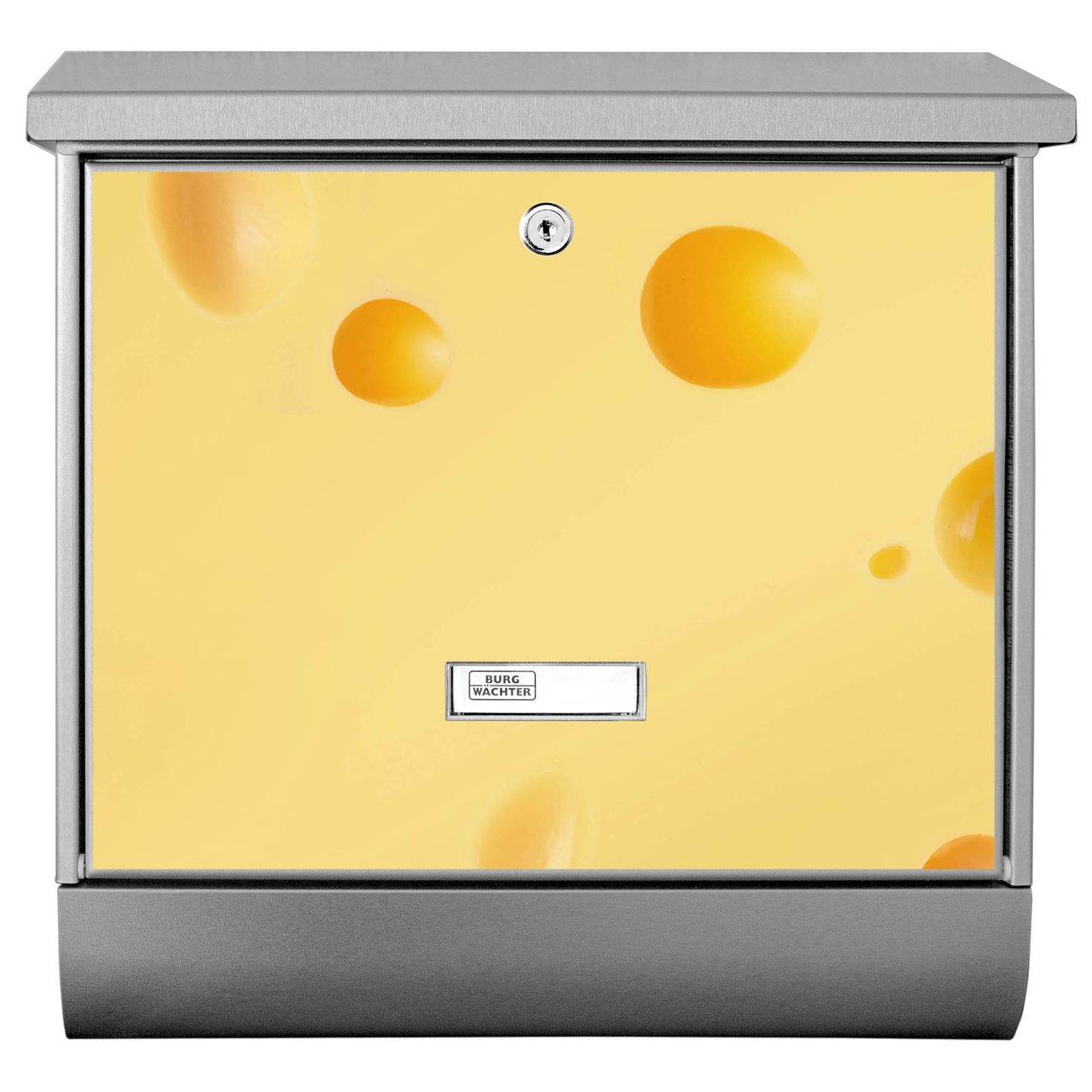 Der Käse Motivbriefkasten hat ein sehr ansprechendes und zeitloses Design. Unsere Motivpalette hält jede Menge Varianten bereit, ob klassisch, modern, verspielt oder witzig - für jeden haben wir das passende Motiv parat. Der Briefkasten mit Zeitungsfach ist Ihr Aushängeschild, heben Sie Sich ab ohne auf Funktionalität zu verzichten.
