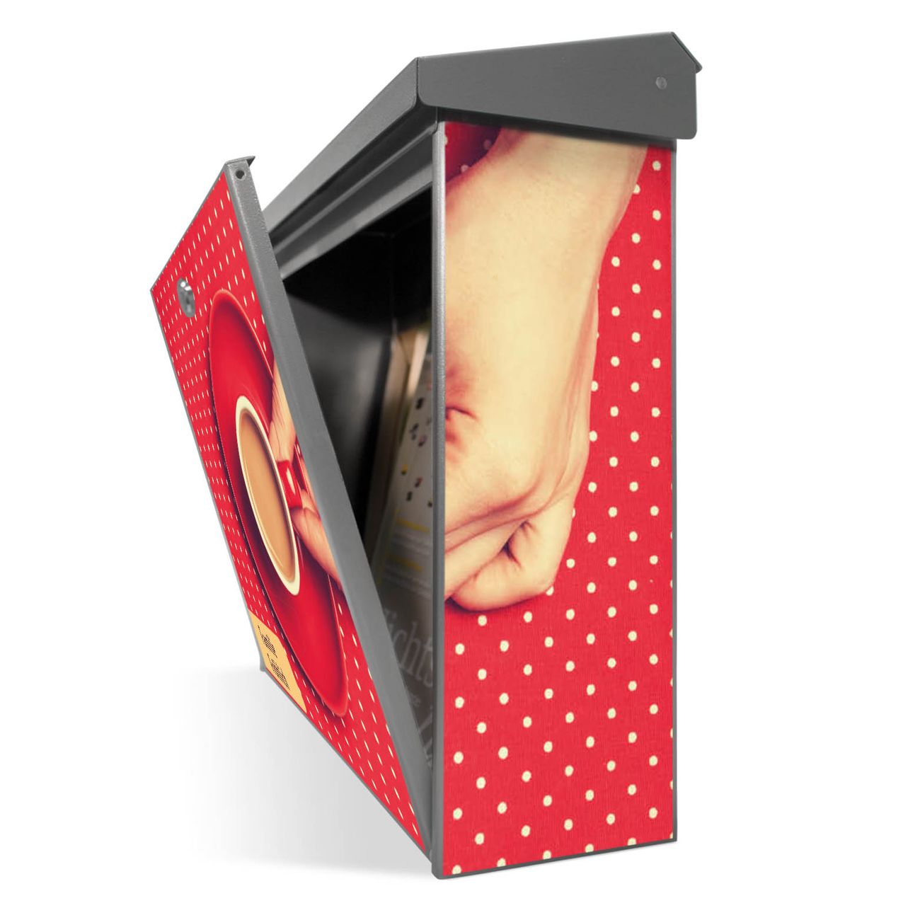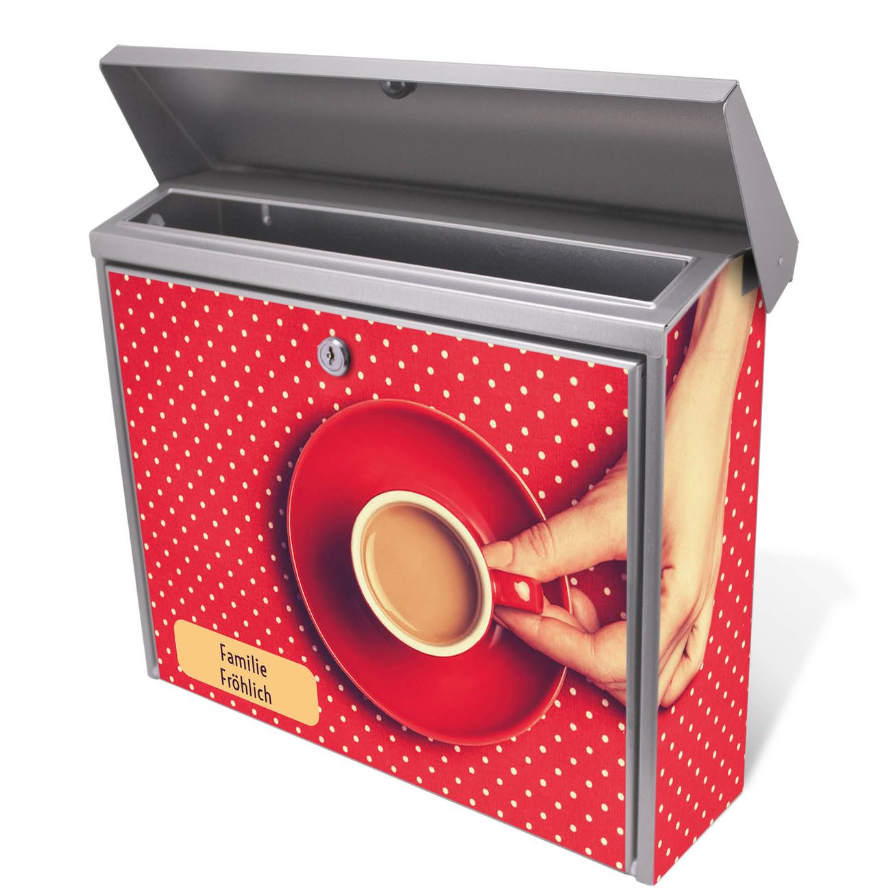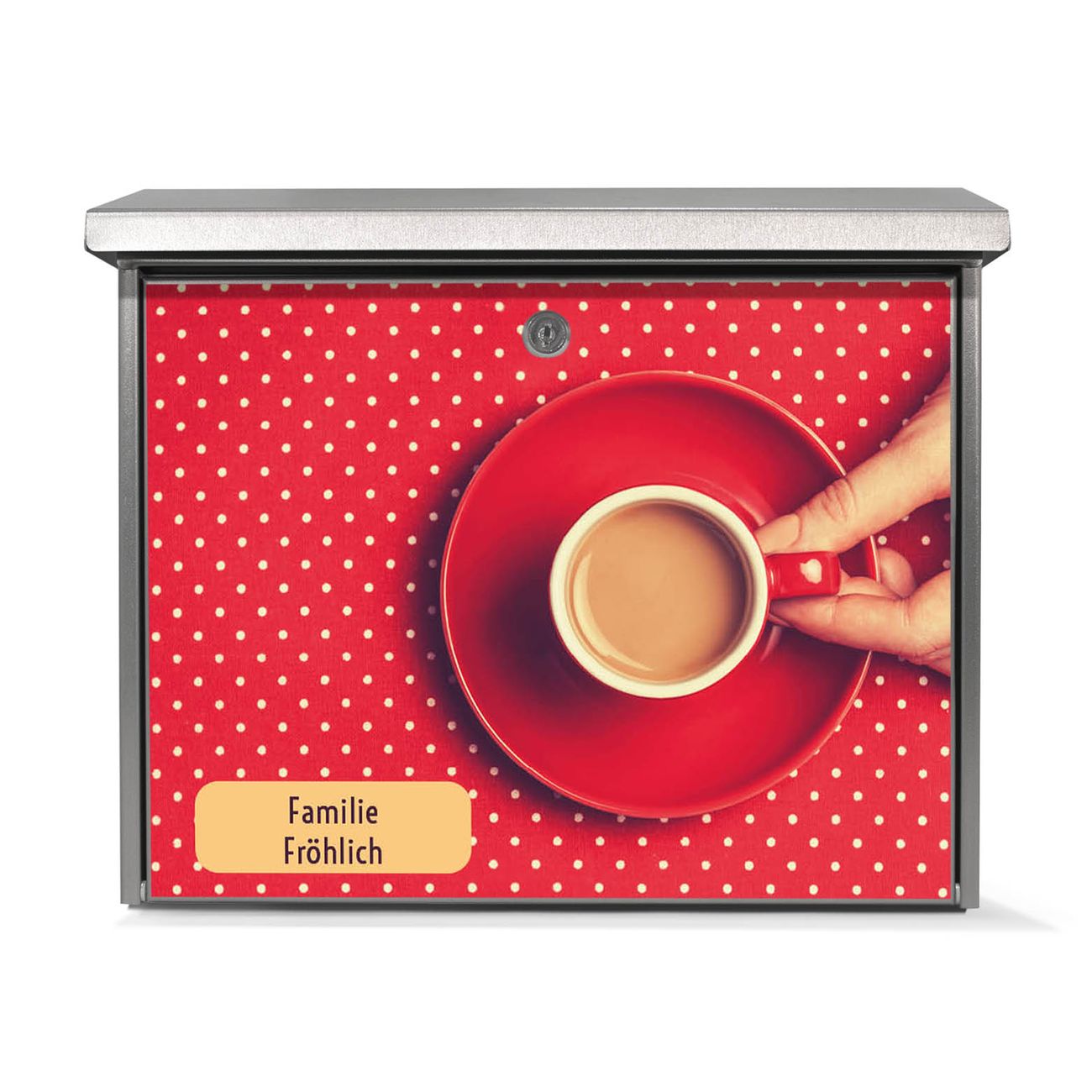Der Postkasten mit Kaffee Rot Weiss Motiv hat ein sehr ansprechendes und zeitloses Design. Unsere Motivpalette hält jede Menge Varianten bereit, ob klassisch, modern, verspielt oder witzig - für jeden haben wir das passende Motiv parat. Der Briefkasten ist das Aushängeschild Ihres Hauses.