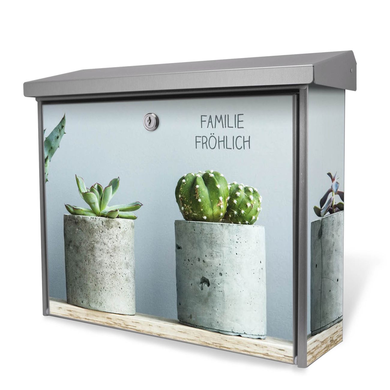 Der Postkasten mit Kakteen in Beton Motiv hat ein sehr ansprechendes und zeitloses Design. Unsere Motivpalette hält jede Menge Varianten bereit, ob klassisch, modern, verspielt oder witzig - für jeden haben wir das passende Motiv parat. Der Briefkasten ist das Aushängeschild Ihres Hauses.