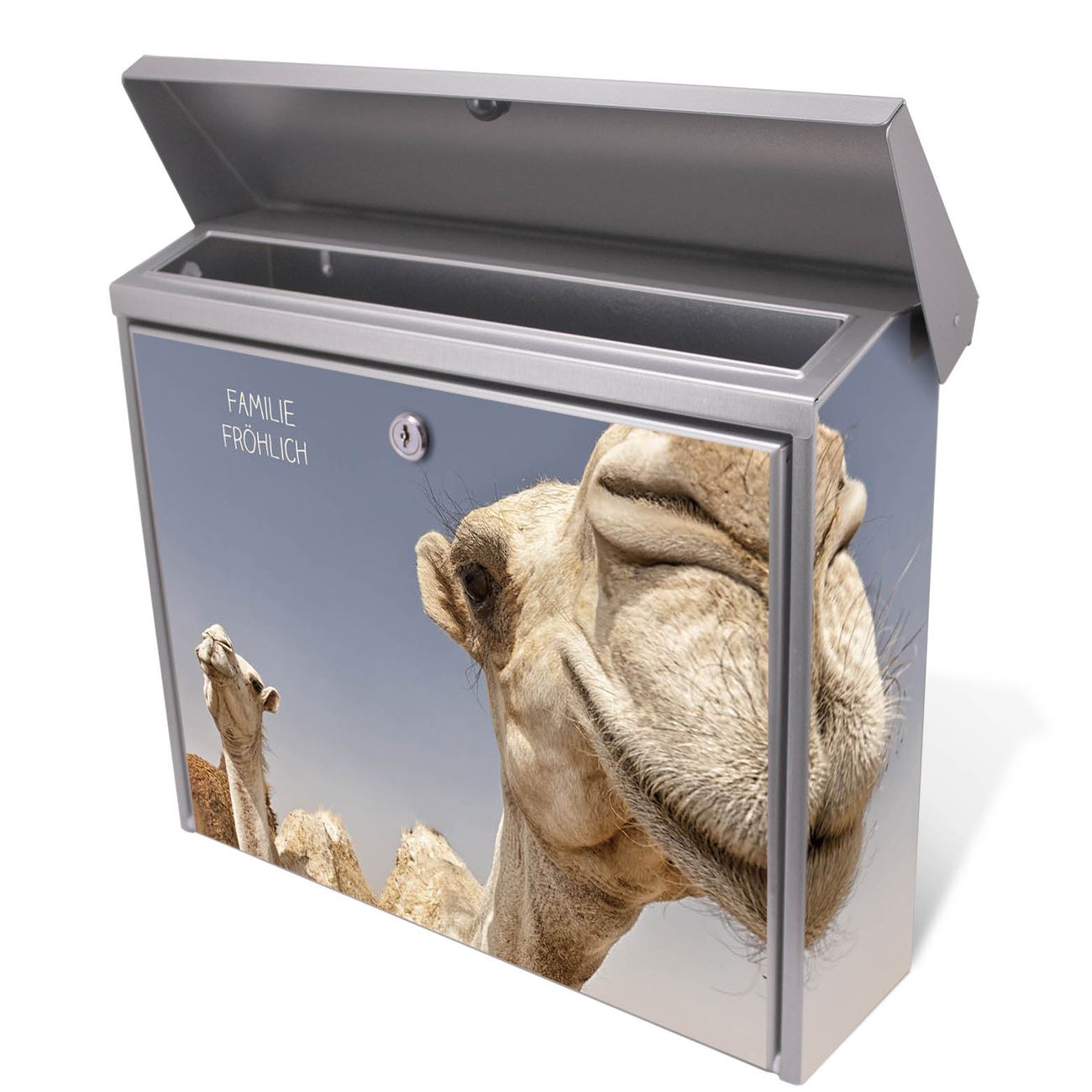 Der Postkasten mit Kamele Motiv hat ein sehr ansprechendes und zeitloses Design. Unsere Motivpalette hält jede Menge Varianten bereit, ob klassisch, modern, verspielt oder witzig - für jeden haben wir das passende Motiv parat. Der Briefkasten ist das Aushängeschild Ihres Hauses.