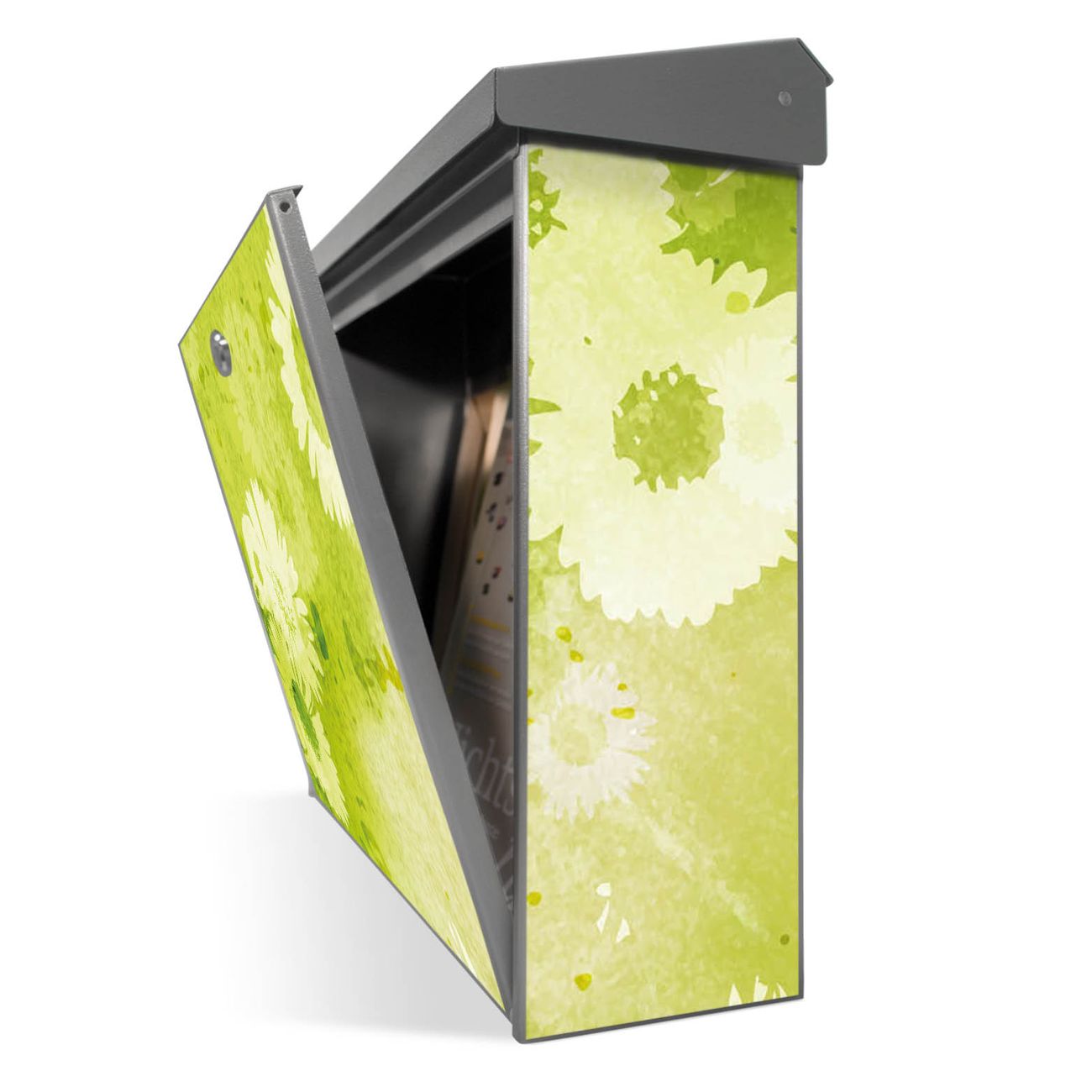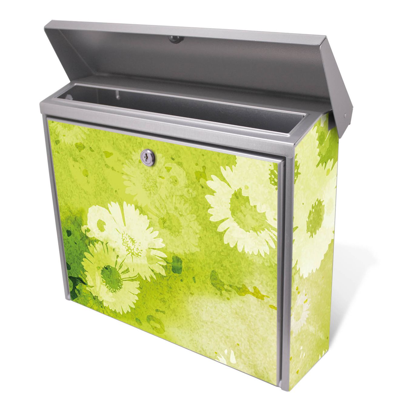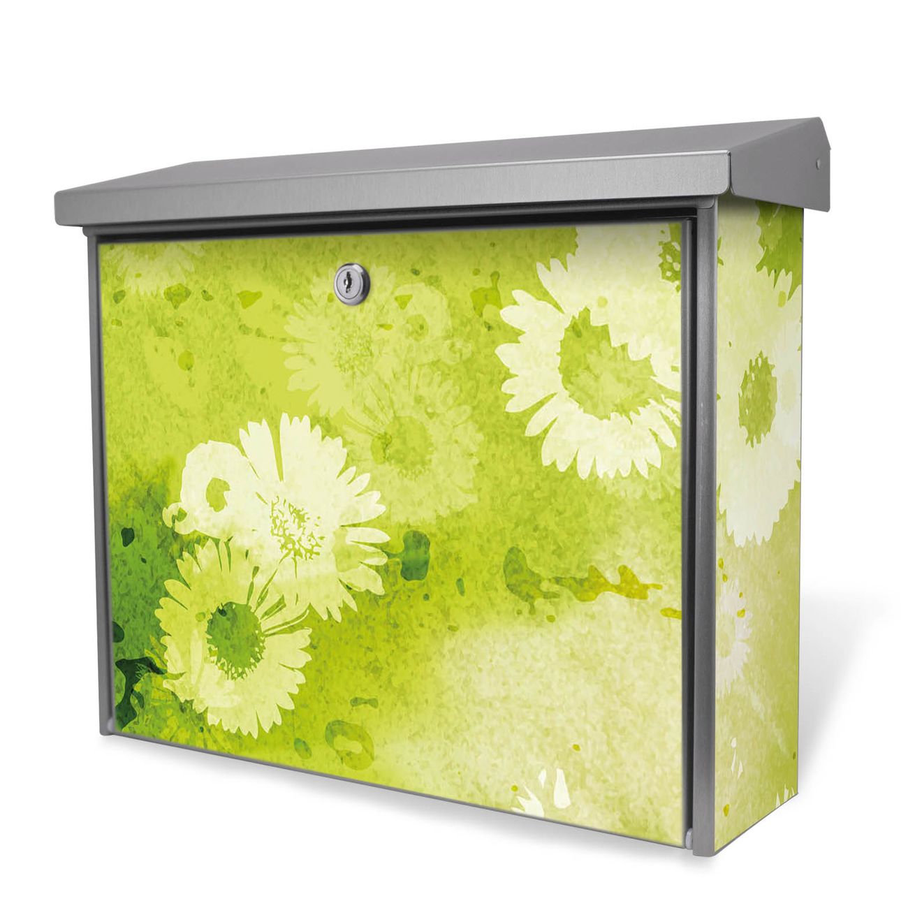 Der Postkasten mit Kamille Grün Motiv hat ein sehr ansprechendes und zeitloses Design. Unsere Motivpalette hält jede Menge Varianten bereit, ob klassisch, modern, verspielt oder witzig - für jeden haben wir das passende Motiv parat. Der Briefkasten ist das Aushängeschild Ihres Hauses.