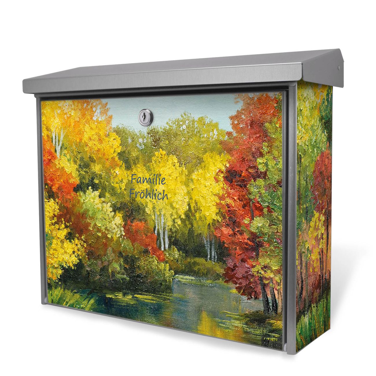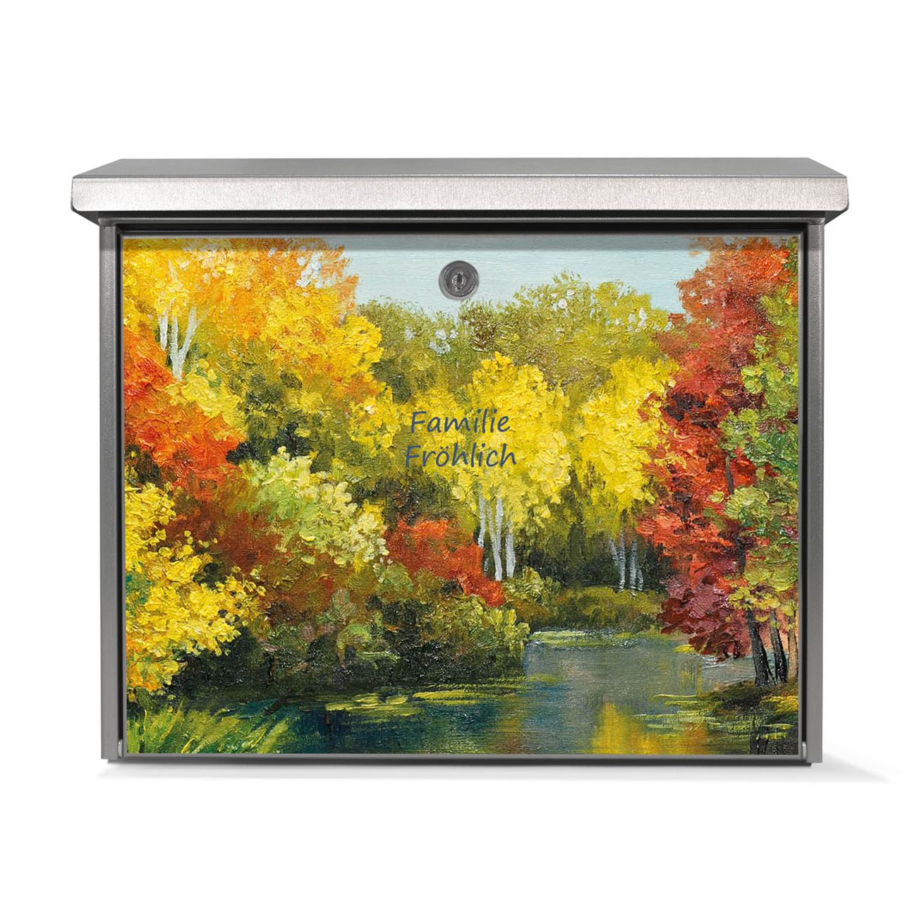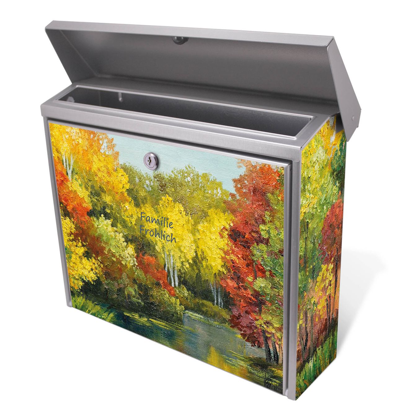 Der Postkasten mit Kanal Im Herbst Motiv hat ein sehr ansprechendes und zeitloses Design. Unsere Motivpalette hält jede Menge Varianten bereit, ob klassisch, modern, verspielt oder witzig - für jeden haben wir das passende Motiv parat. Der Briefkasten ist das Aushängeschild Ihres Hauses.