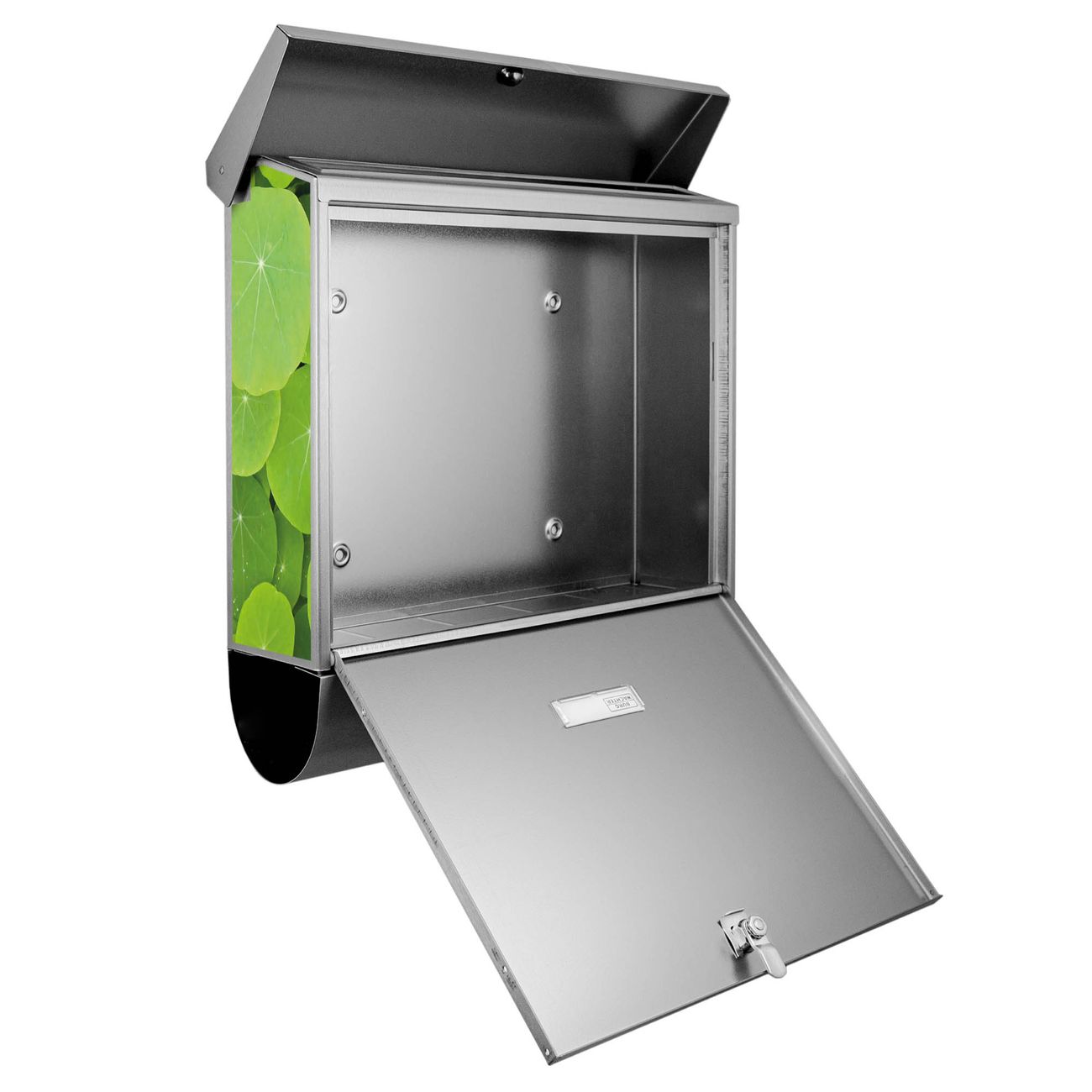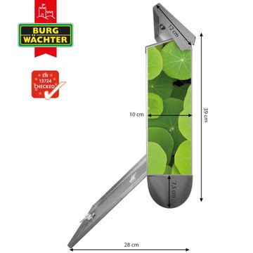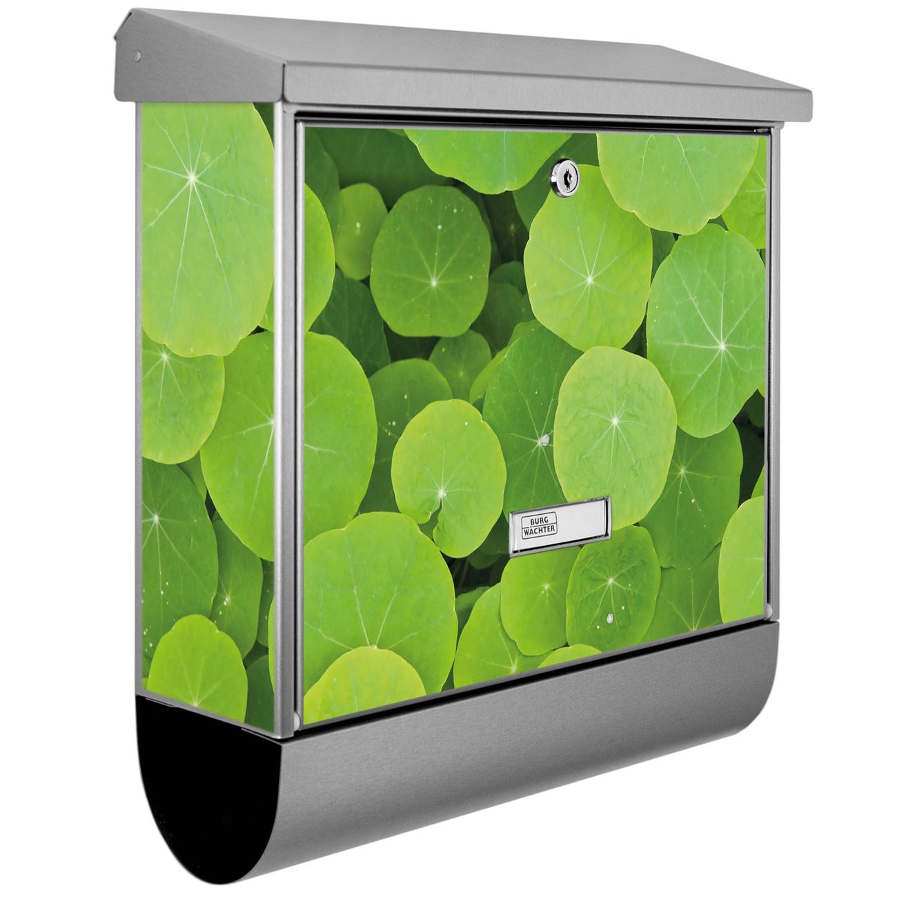 Der BURG-WÄCHTER Edelstahl Briefkasten mit Motiv Kapuzinerkresse und Zeitungsrolle bietet Ihnen mit seinem Fassungsvermögen genügend Platz auch für große A4 Sendungen und Zeitschriften. Das integrierte Regendach schützt Ihre Post vor dem Eindringen von Regen.