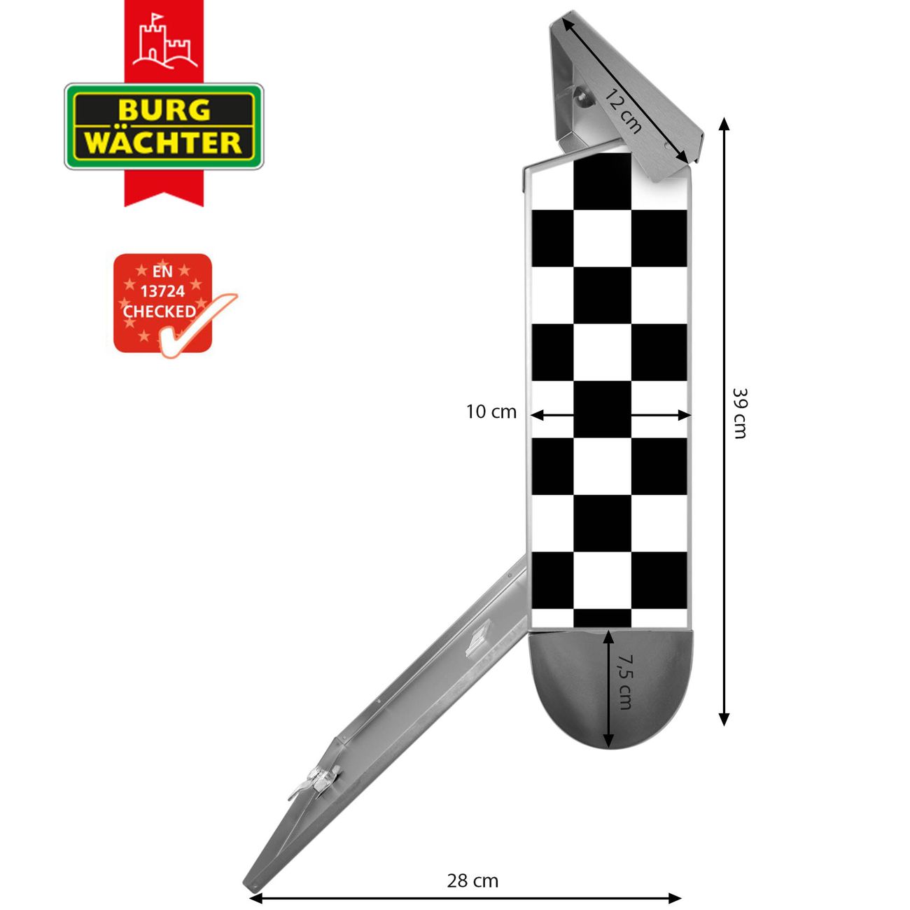 Der BURG-WÄCHTER Edelstahl Briefkasten mit Motiv Karo Schwarz und Zeitungsrolle bietet Ihnen mit seinem Fassungsvermögen genügend Platz auch für große A4 Sendungen und Zeitschriften. Das integrierte Regendach schützt Ihre Post vor dem Eindringen von Regen.