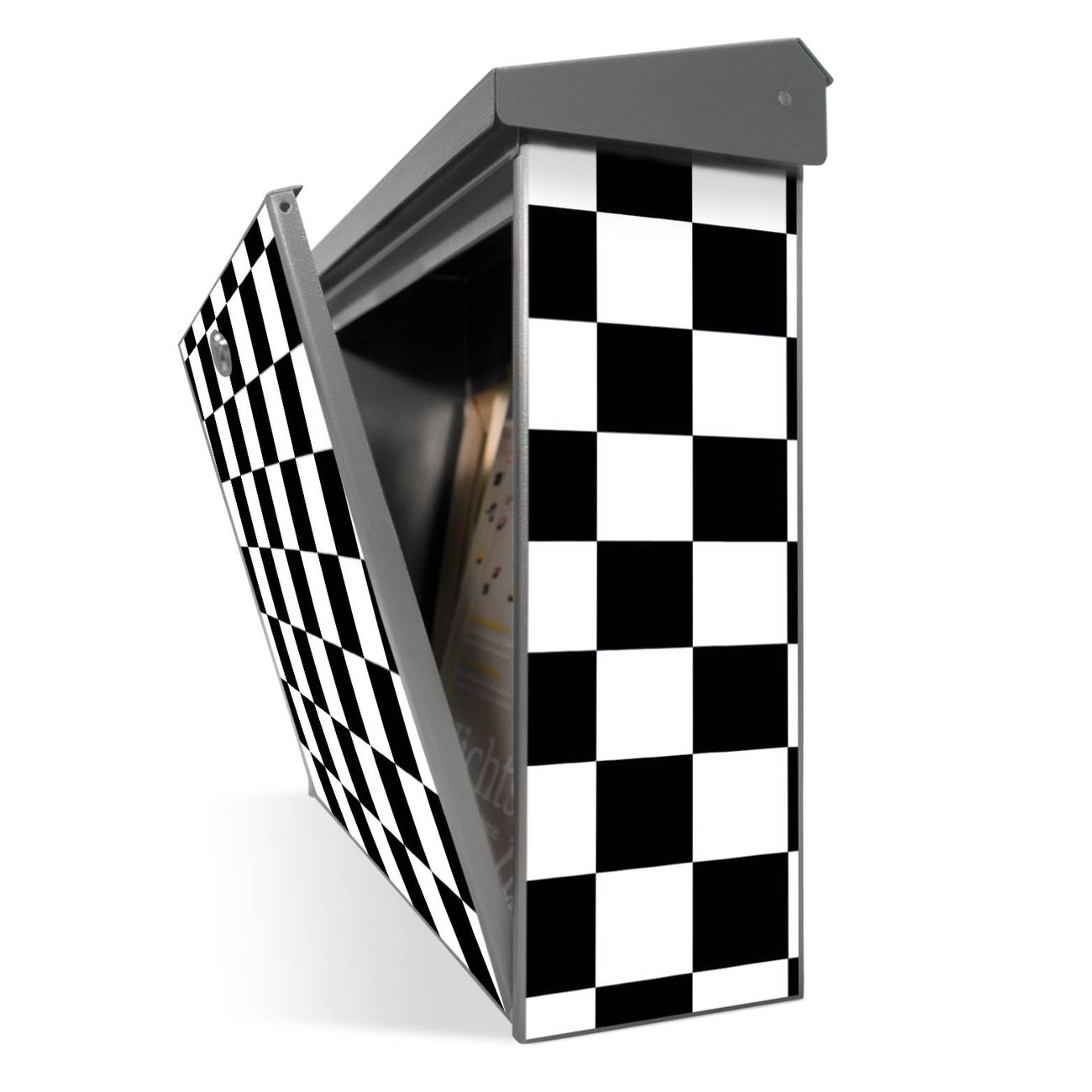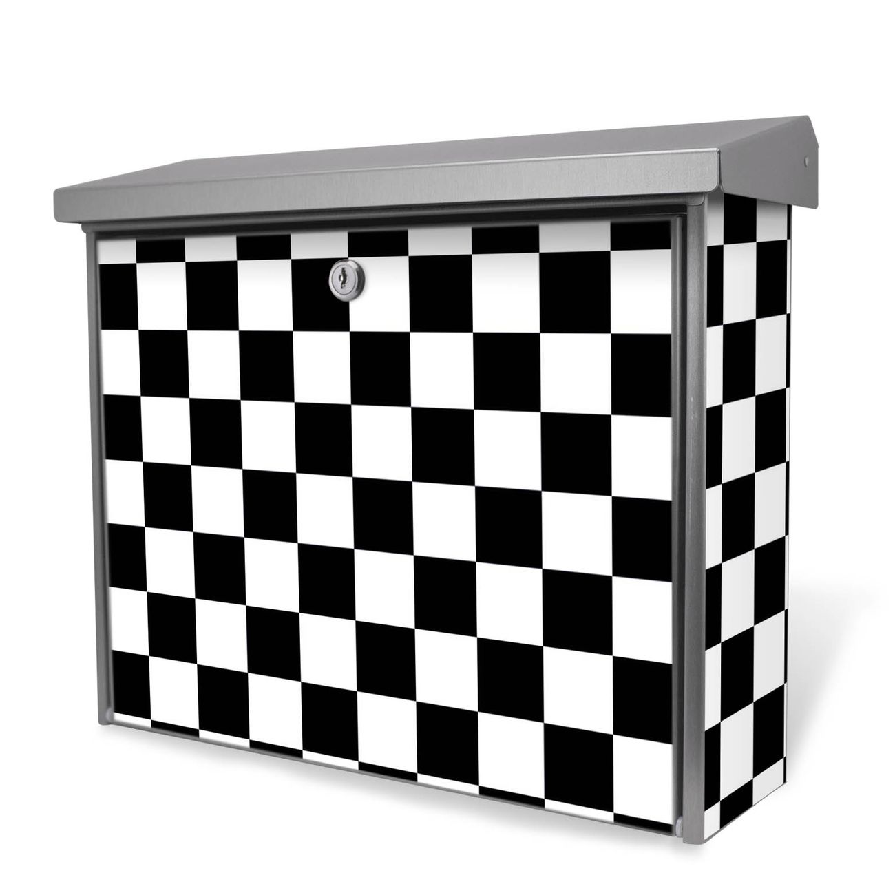 Der Postkasten mit Karo Schwarz Motiv hat ein sehr ansprechendes und zeitloses Design. Unsere Motivpalette hält jede Menge Varianten bereit, ob klassisch, modern, verspielt oder witzig - für jeden haben wir das passende Motiv parat. Der Briefkasten ist das Aushängeschild Ihres Hauses.