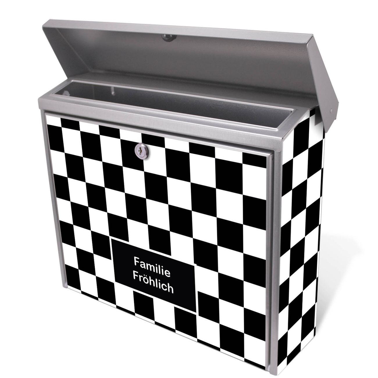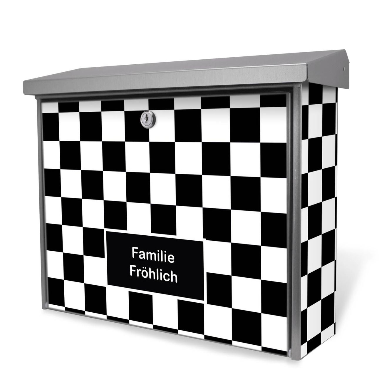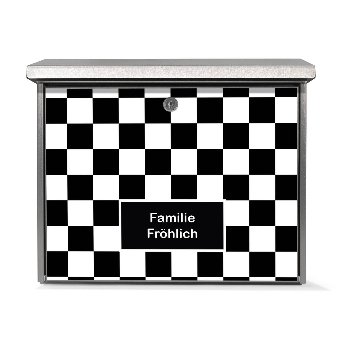 Der Postkasten mit Karo Schwarz Motiv hat ein sehr ansprechendes und zeitloses Design. Unsere Motivpalette hält jede Menge Varianten bereit, ob klassisch, modern, verspielt oder witzig - für jeden haben wir das passende Motiv parat. Der Briefkasten ist das Aushängeschild Ihres Hauses.