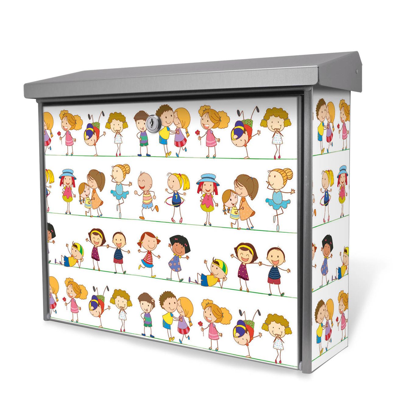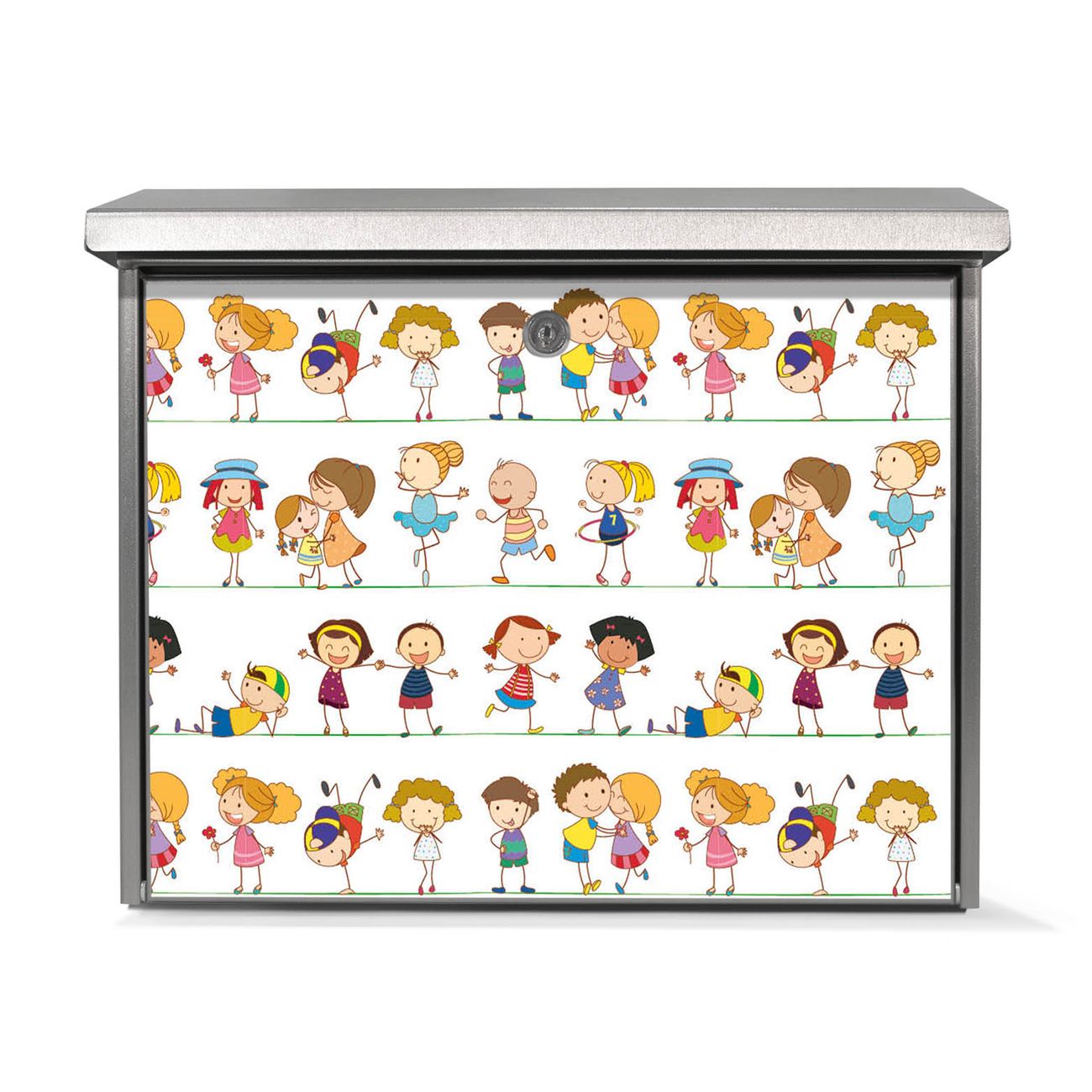 Der Postkasten mit Kinder Motiv hat ein sehr ansprechendes und zeitloses Design. Unsere Motivpalette hält jede Menge Varianten bereit, ob klassisch, modern, verspielt oder witzig - für jeden haben wir das passende Motiv parat. Der Briefkasten ist das Aushängeschild Ihres Hauses.
