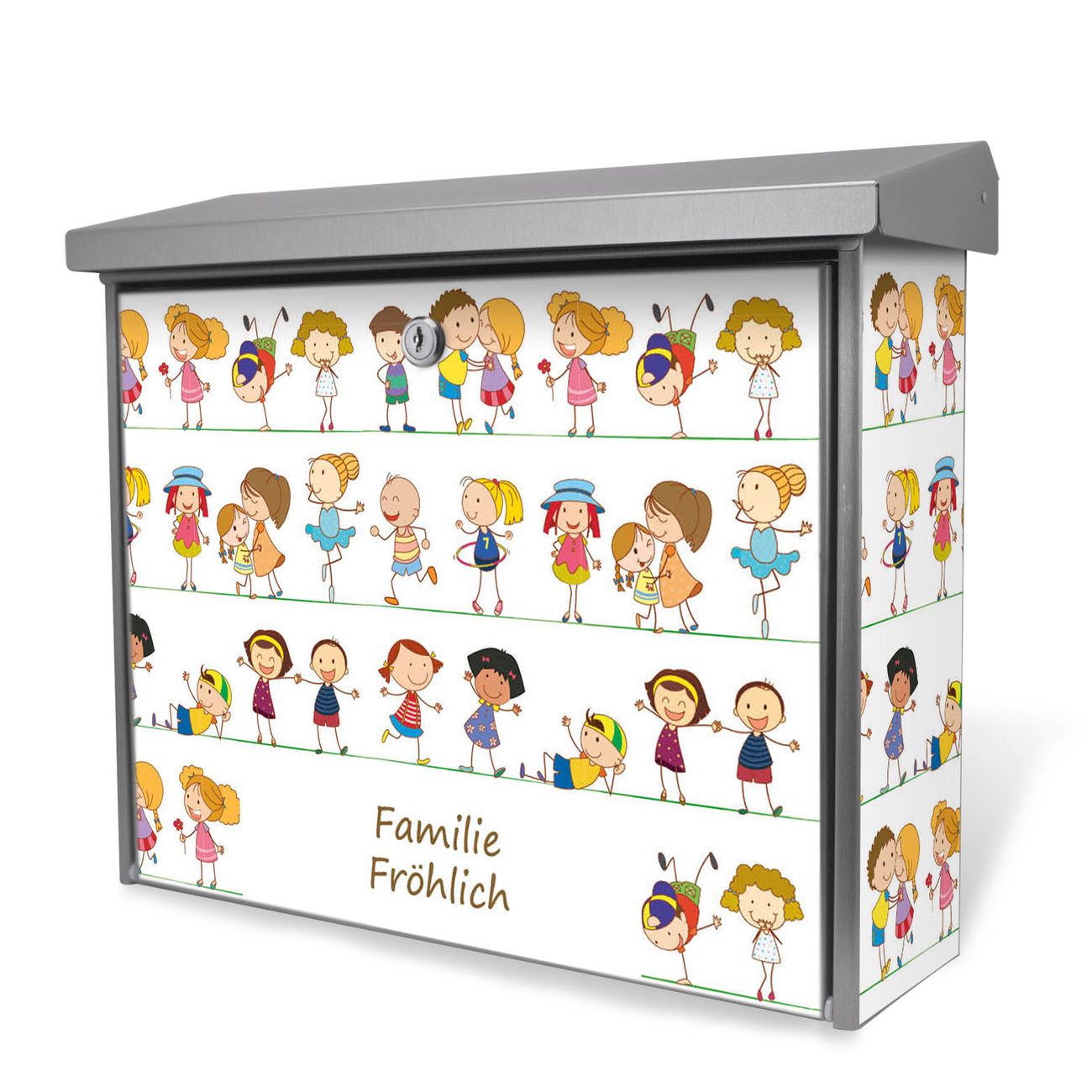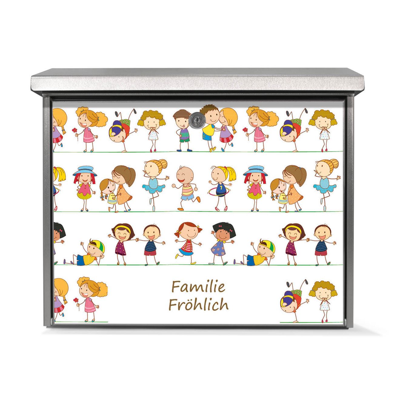 Der Postkasten mit Kinder Motiv hat ein sehr ansprechendes und zeitloses Design. Unsere Motivpalette hält jede Menge Varianten bereit, ob klassisch, modern, verspielt oder witzig - für jeden haben wir das passende Motiv parat. Der Briefkasten ist das Aushängeschild Ihres Hauses.