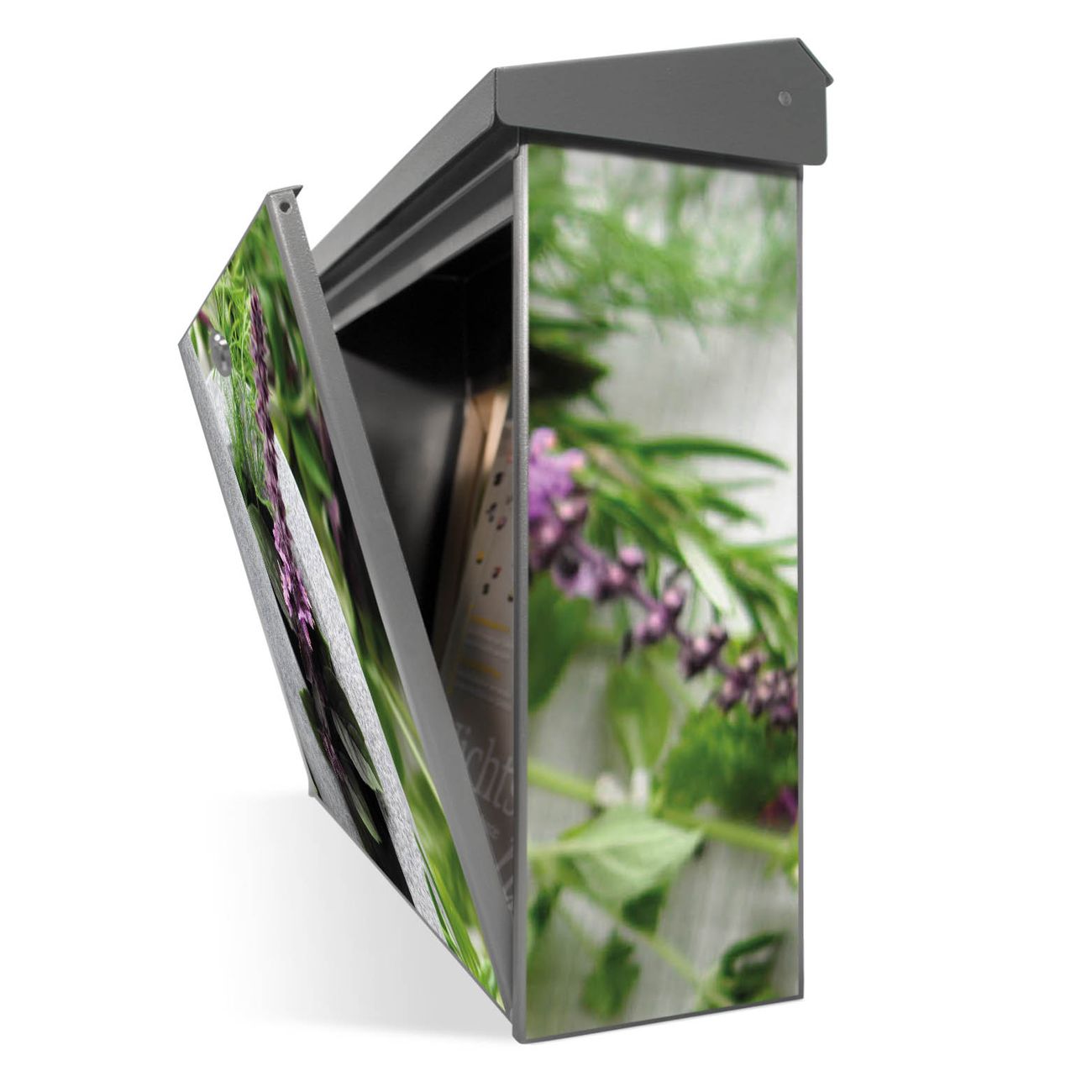 Der Postkasten mit Kräuter Motiv hat ein sehr ansprechendes und zeitloses Design. Unsere Motivpalette hält jede Menge Varianten bereit, ob klassisch, modern, verspielt oder witzig - für jeden haben wir das passende Motiv parat. Der Briefkasten ist das Aushängeschild Ihres Hauses.