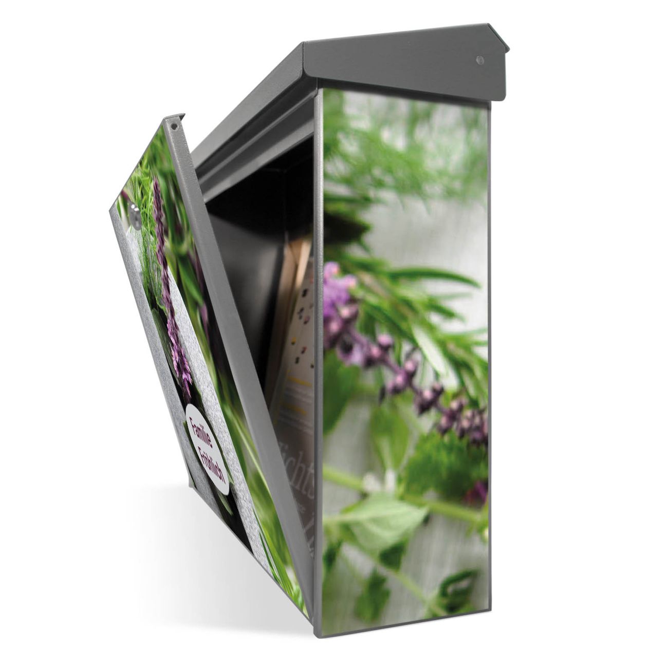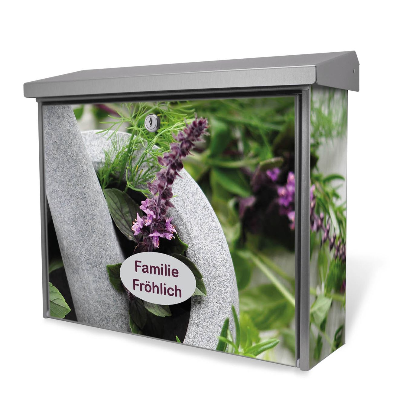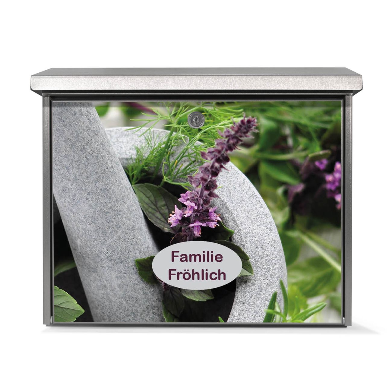 Der Postkasten mit Kräuter Motiv hat ein sehr ansprechendes und zeitloses Design. Unsere Motivpalette hält jede Menge Varianten bereit, ob klassisch, modern, verspielt oder witzig - für jeden haben wir das passende Motiv parat. Der Briefkasten ist das Aushängeschild Ihres Hauses.